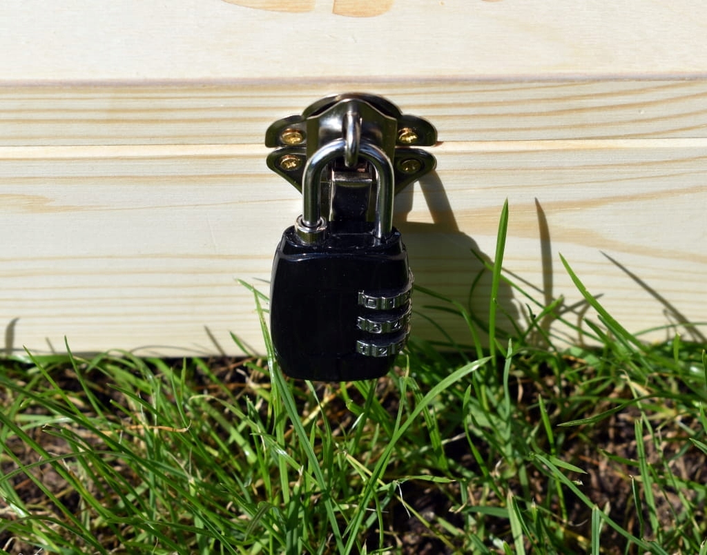 Коробка размерами 35 х 25 х 10 см закрывается на кодовый замок (трехзначный код можно свободно менять, цвет замок может отличаться от того, что на фото). Изготовлен из натурального дерева светло-бежевого цвета.
