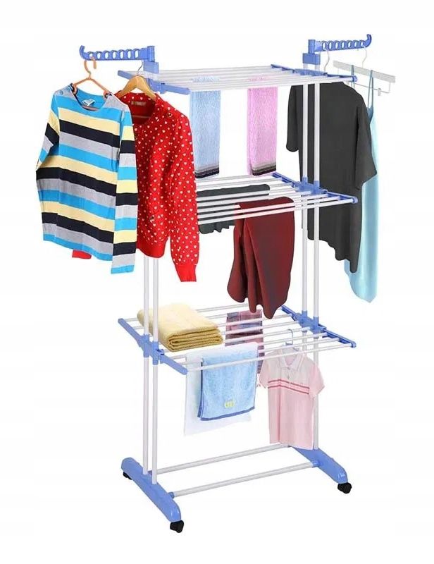 Сушилка для белья — идеальное решение для людей, которые ищут просторную, эффективную и простую в использовании альтернативу классическим сушилкам. В отличие от традиционных моделей имеет 3 уровня, что позволяет сушить одежду на трех разных высотах одновременно, что существенно экономит пространство. Всего он имеет целых 6 кронштейнов для подвешивания одежды, в том числе два специальных кронштейна для вешалок с пазами, которые предотвращают смещение одежды, позволяя получить необходимое расстояние между ними во время сушки.
