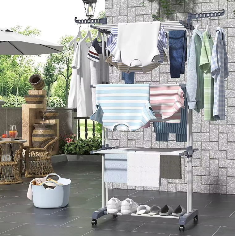Сушилка имеет три уровня сушки и специальные крючки, что позволяет одновременно сушить разные виды одежды, в том числе деликатные блузки b>, толстые свитера и туфли. Складная конструкция позволяет быстро складывать и раскладывать сушилку в зависимости от ваших потребностей.