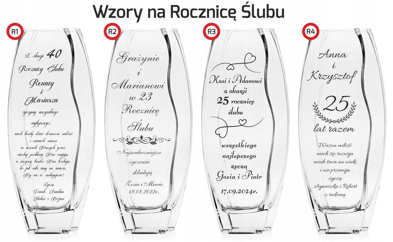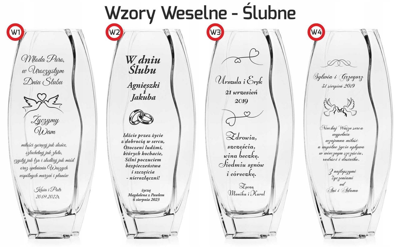 - содержание гравировки: на верху вазы: Кася и Анджей, июль 30 декабря 2019 г., внизу вазы: пожелания Кристине и Рафалу