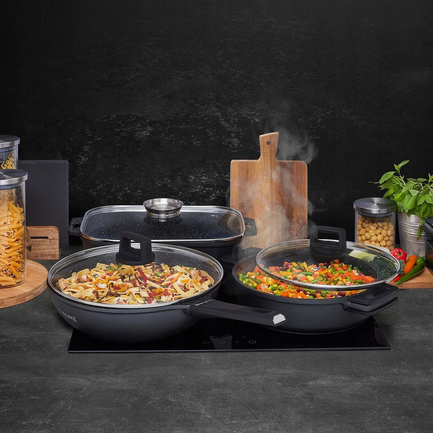 Каменная жаровня Starke Pro Taylor Marble 6,8 л с антипригарным покрытием Greblon® C3 (основной слой, устойчивый к истиранию; защитный слой; антипригарный слой) позволяет использовать меньше жира и приправлять блюда, не снимая крышку (ароматизатор в ручке), поэтому вы приготовите полезное и вкусное жаркое, блюда из птицы или вегетарианские блюда. Представленная мраморная жаровня изготовлена из алюминия и очень прочного литья под давлением, которая быстро нагревается и трудно деформируется, а ее крышка с кромкой из нержавеющей стали эффективно перекрывает циркуляцию воздуха, повышая температуру. Вы будете готовить еду быстрее. Вы сэкономите энергию. Покрытие Greblon® C3 чрезвычайно долговечно (8000 циклов истирания), поэтому вы получаете посуду, которая прослужит долгие годы и беспроблемную очистку без долгой чистки. Его разработала немецкая компания WEILBURGER. Посуда подходит для любого типа плиты, включая индукционную. Вы также можете поджарить ингредиенты в небольшом количестве жира с эффектом гриля. Он имеет маркировку PFOA Free, а его конструкция безопасна для здоровья и не токсична для окружающей среды. Продукт рекомендует представитель бренда Starke Pro Петр Кухарский. Пользоваться солидной и массивной жаровней в гранитном стиле Taylor Marble можно в духовке даже при 220 градусах Цельсия – без крышки и силиконовых накладок на ручках, входящих в комплект. На товар распространяется гарантия производителя 5 лет.