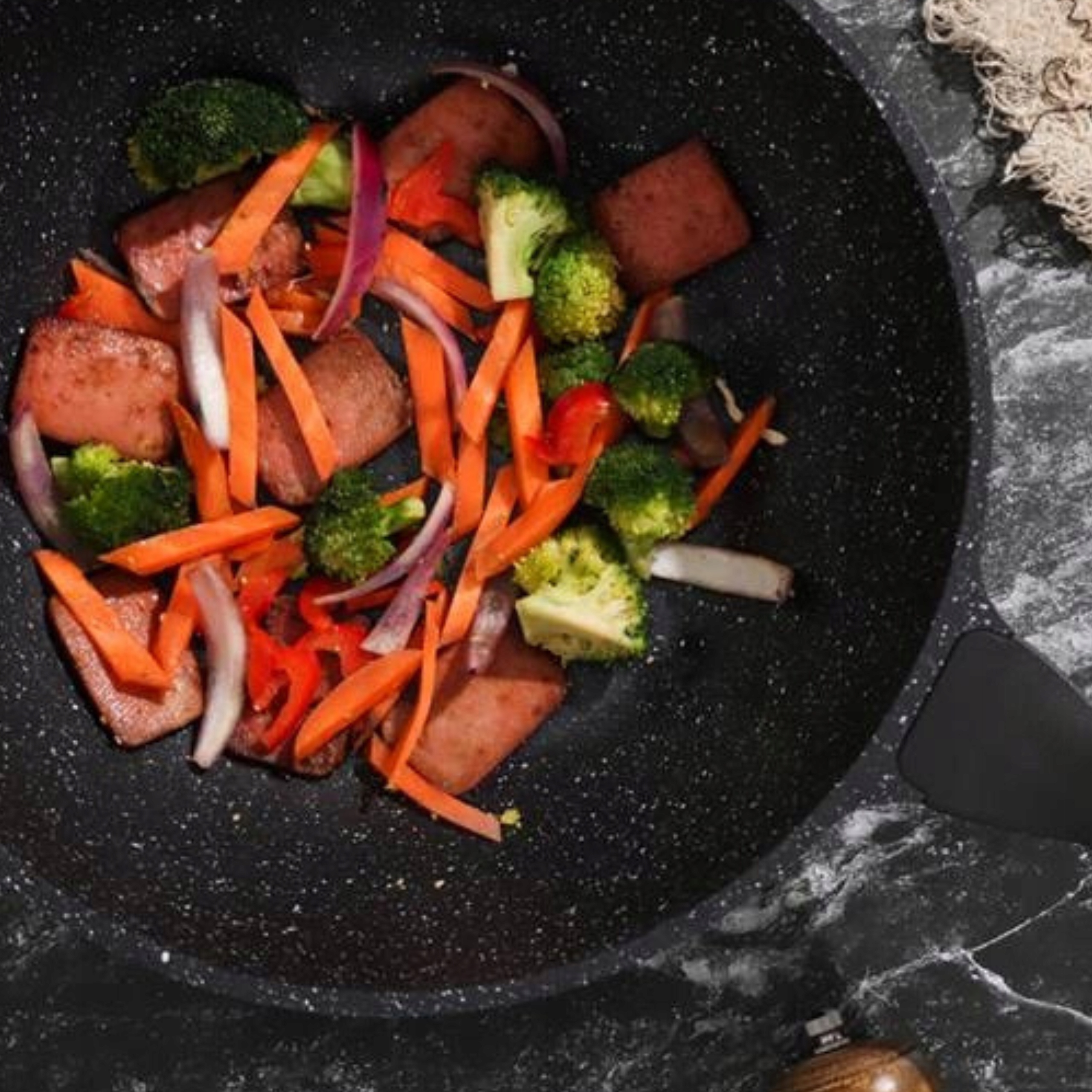 Готовить, не опасаясь сжигания! Инновационное мраморное покрытие позволяет вам жарить с минимальным количеством жира, что делает ваши блюда более здоровыми Крышка h2>