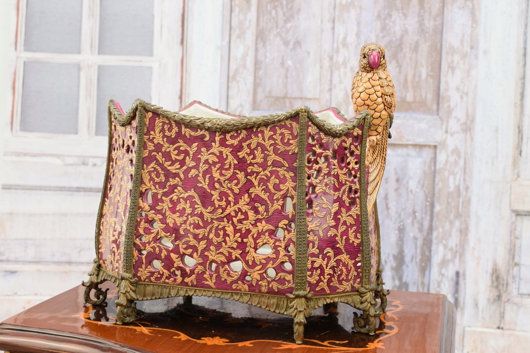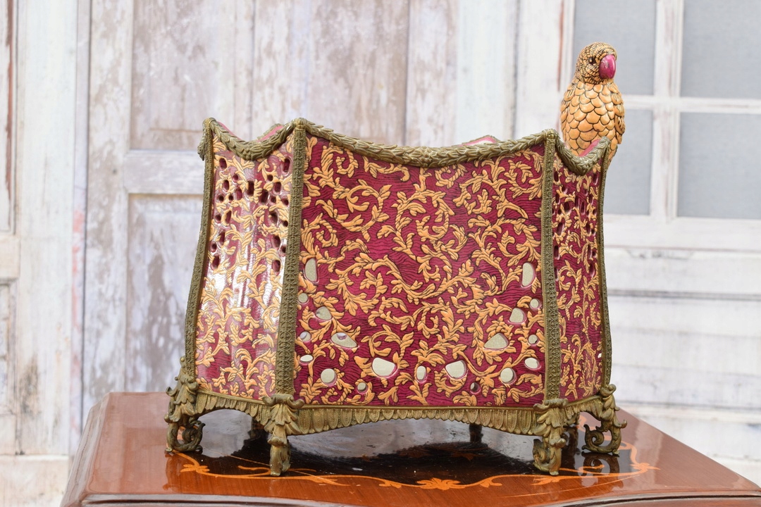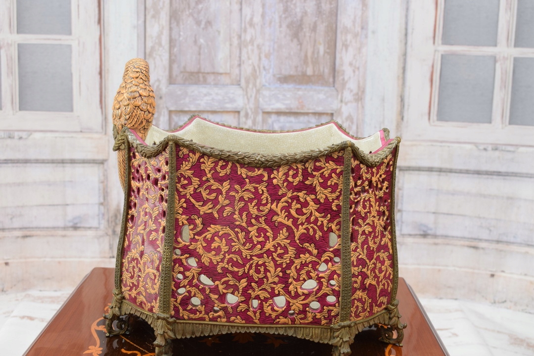 Большое блюдо для шкатулки, красный фарфор + бронза