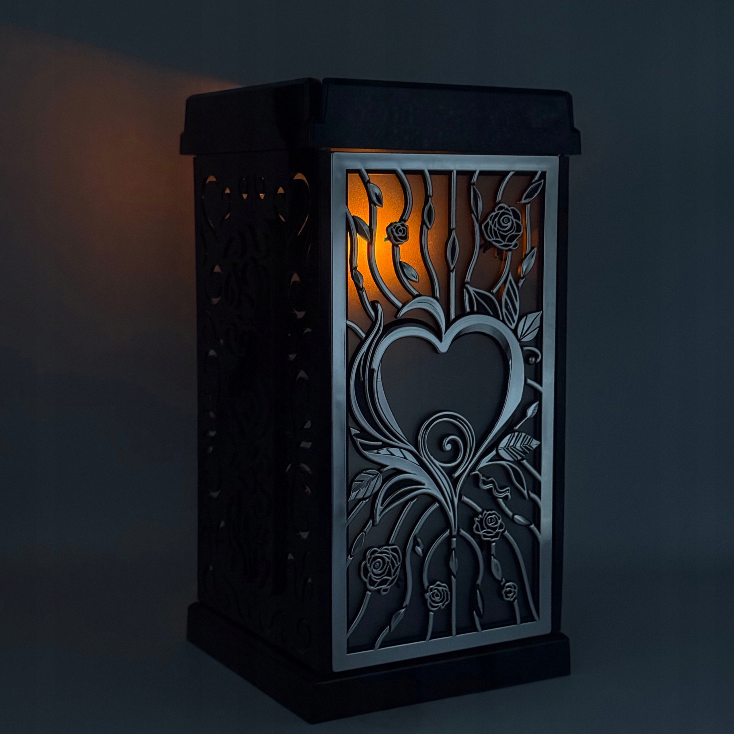 Большая солнечная свеча для черной и серебряной могилы с сердечными солнечными фонарями