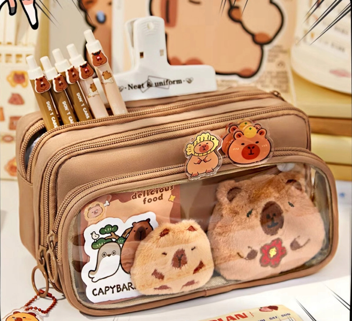 Capybara Pencil Case имеет идеальный размер для размещения всех необходимых школьных принадлежностей. Несмотря на свою компактную форму, внутренние карманы и отсеков достаточно просторных для хранения множества различных предметов.