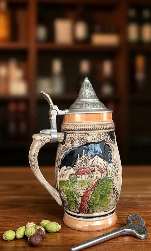 Большая стильная керамическая кружка с цинковой крышкой пиво Bavaria Германия