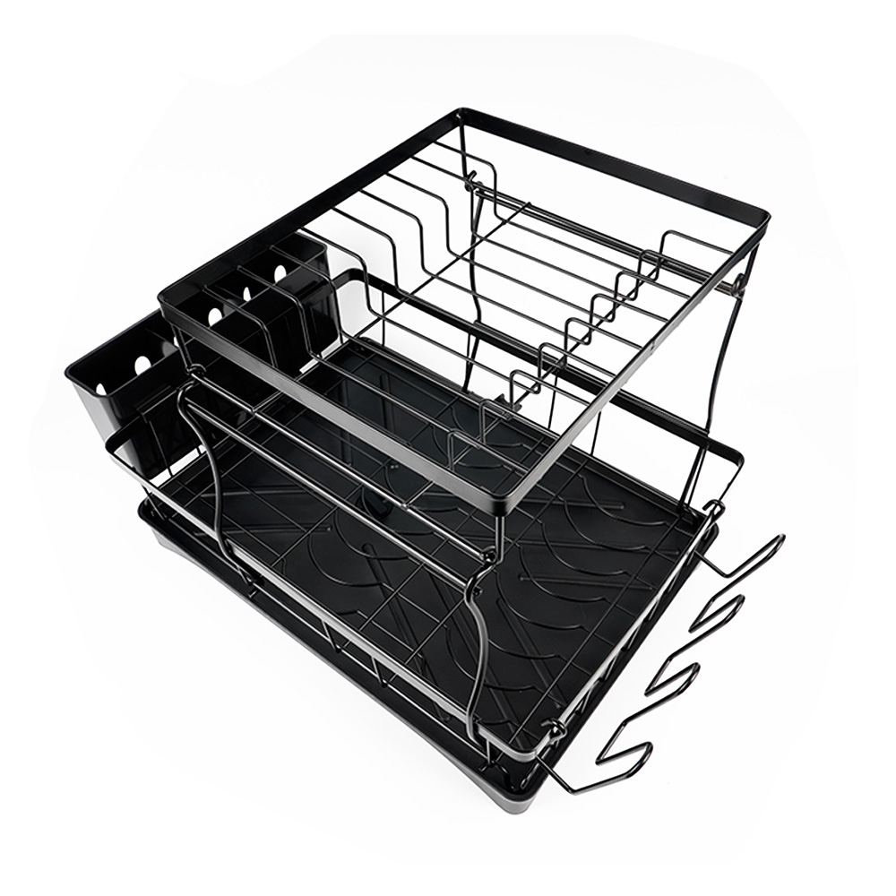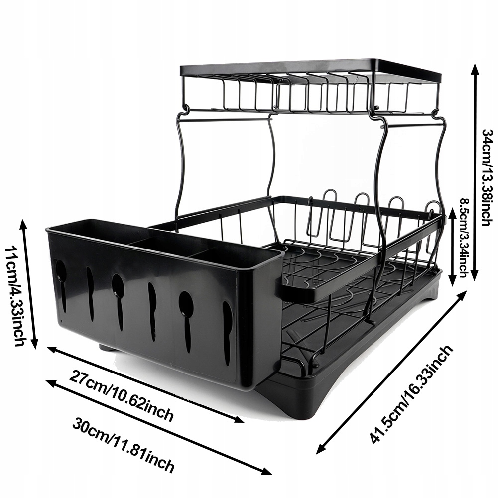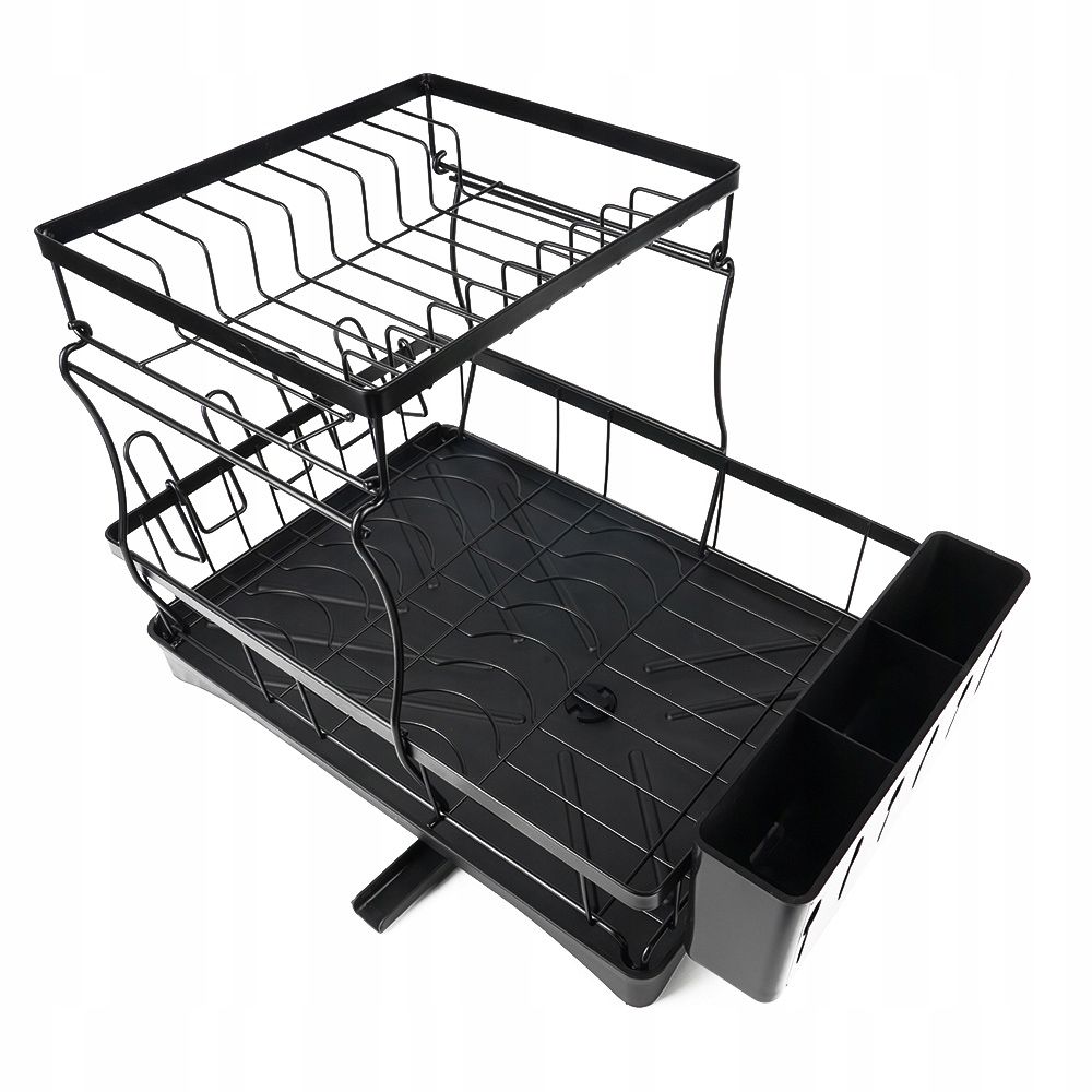 БОЛЬШОЙ СТИЛЬНЫЙ МЕТАЛЛИЧЕСКИЙ ПОДДОН ДЛЯ СУШКИ ПОСУДЫ, 2-Х ЯРУСНЫЙ ПОДДОН, ЧЕРНЫЙ
