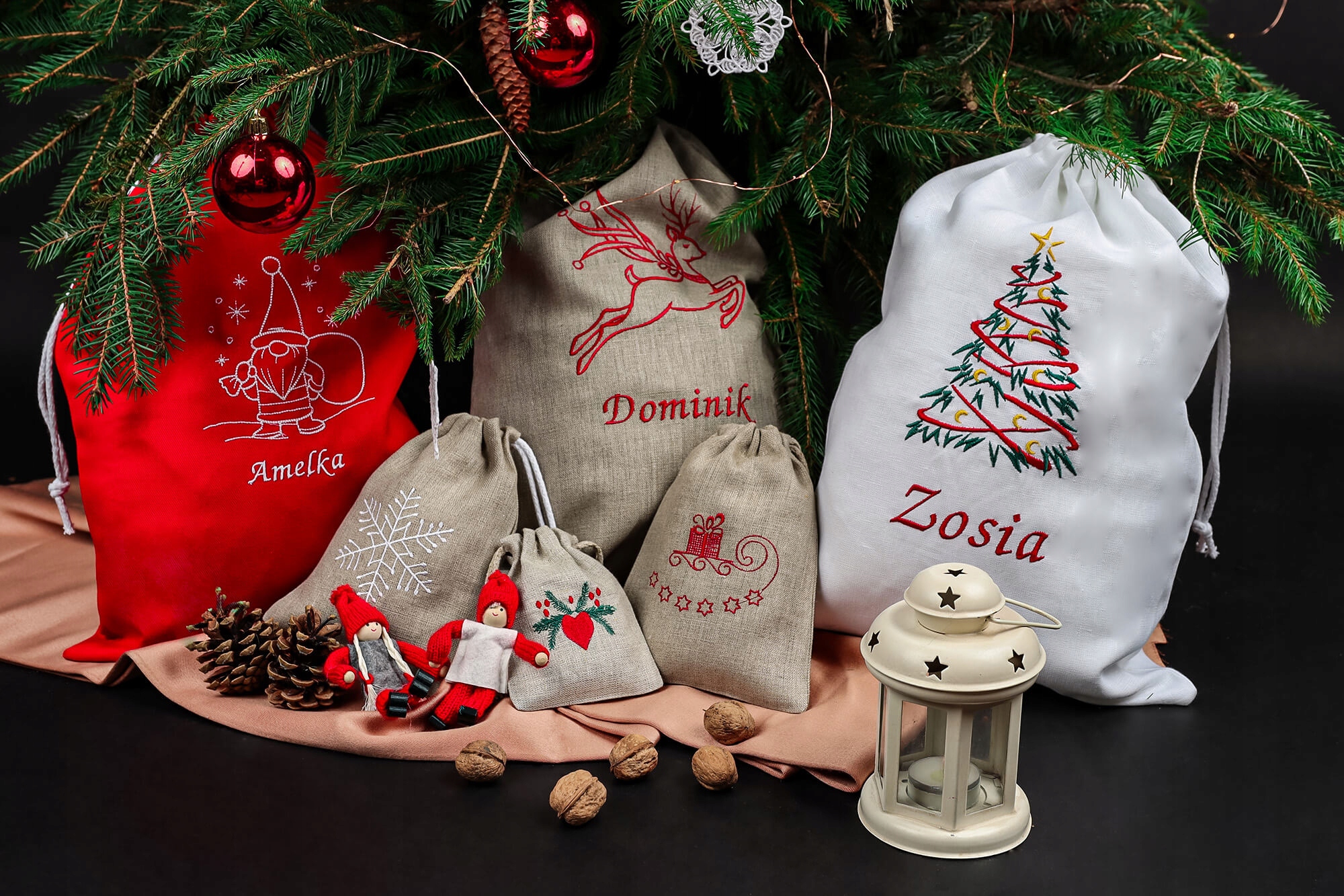 Красная хлопковая сумка отлично смотрится под елкой, а также на каминах или в качестве сумки для пакета для Миколаджки - сладости.