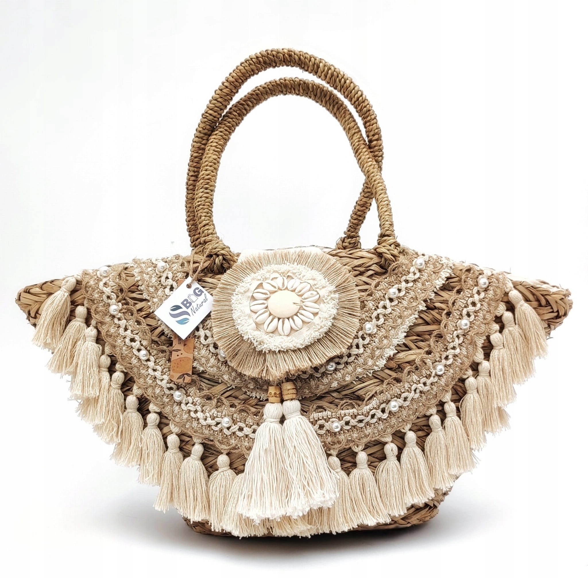 Велика сумка-кошик Boho з джутової морської трави та бахроми