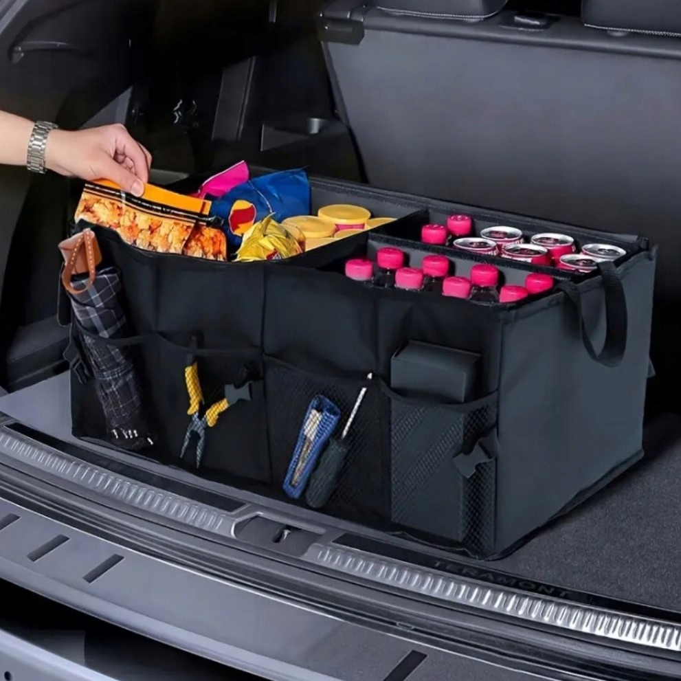 Этот универсальный органайзер в багажник — незаменимый элемент оснащения каждого автомобиля, который поможет вам сохранять порядок и обеспечить безопасность во время вождения. Благодаря прочной конструкции, большой вместимости и практичным решениям, таким как дополнительные карманы и ручки, этот продукт оправдает ожидания даже самых требовательных пользователей. Идеально подходит для любой поездки, шопинга или повседневного использования.