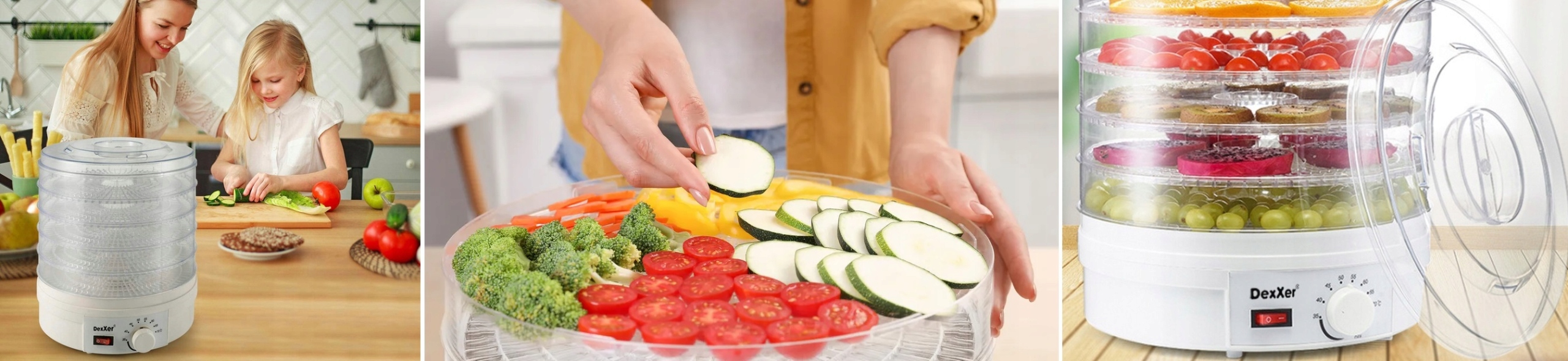 Сушит широкий спектр продуктов, таких как грибы, абрикосы, бананы, яблоки, ананасы, клубника, персики, груши, сливы, черника, орехи, капуста, сладкий картофель, травы и специи. и другие сухие снеки.
