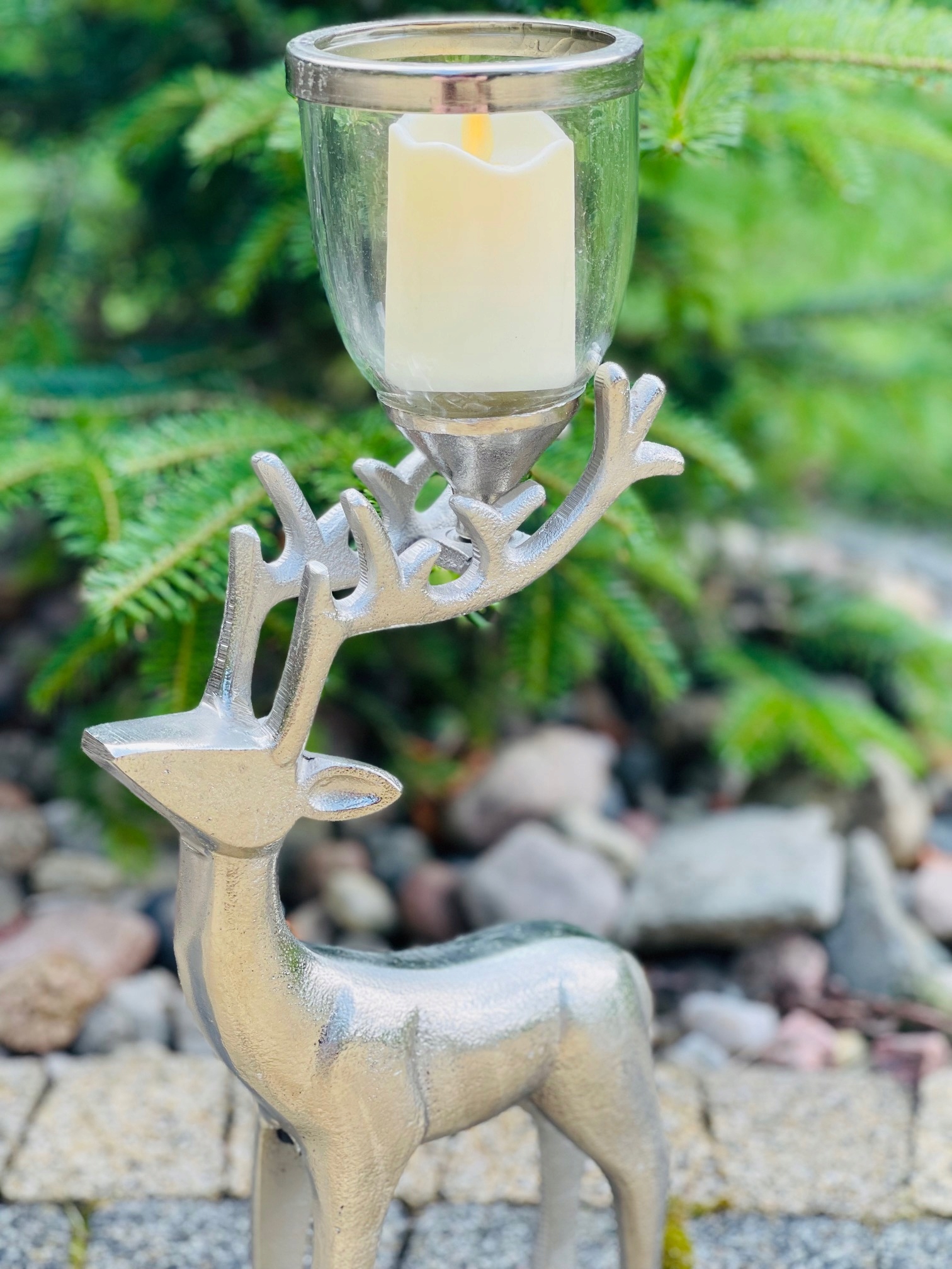 Большой, массивный серебряный олень с чашкой в рогах для маленькой свечи или чайной свечи не подойдет. не только привнесет элегантность в интерьер, но и дополнительно согреет его.