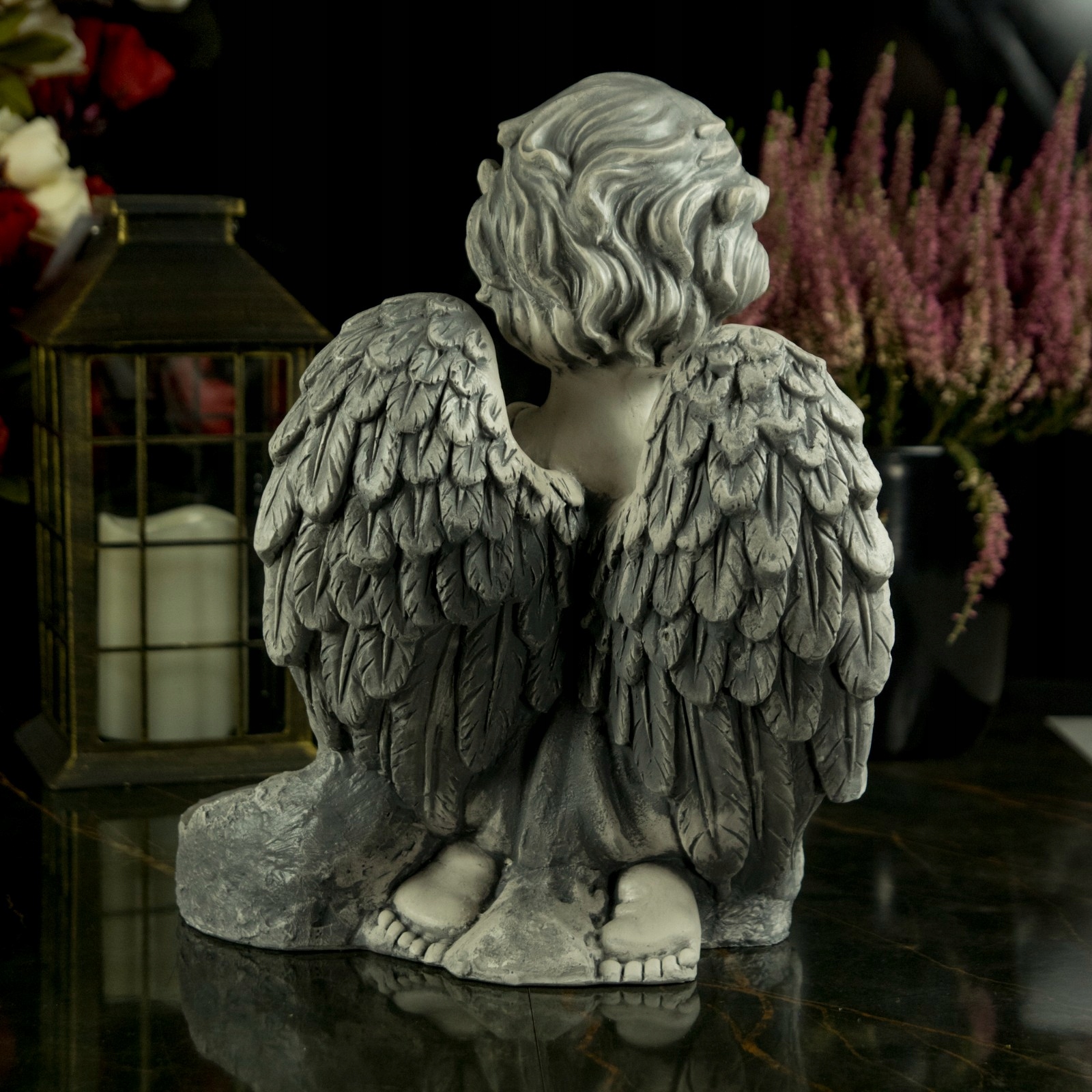 ➡️ Декоративная гипсовая садовая фигурка-надгробие со светодиодной лампой в форме ангела
