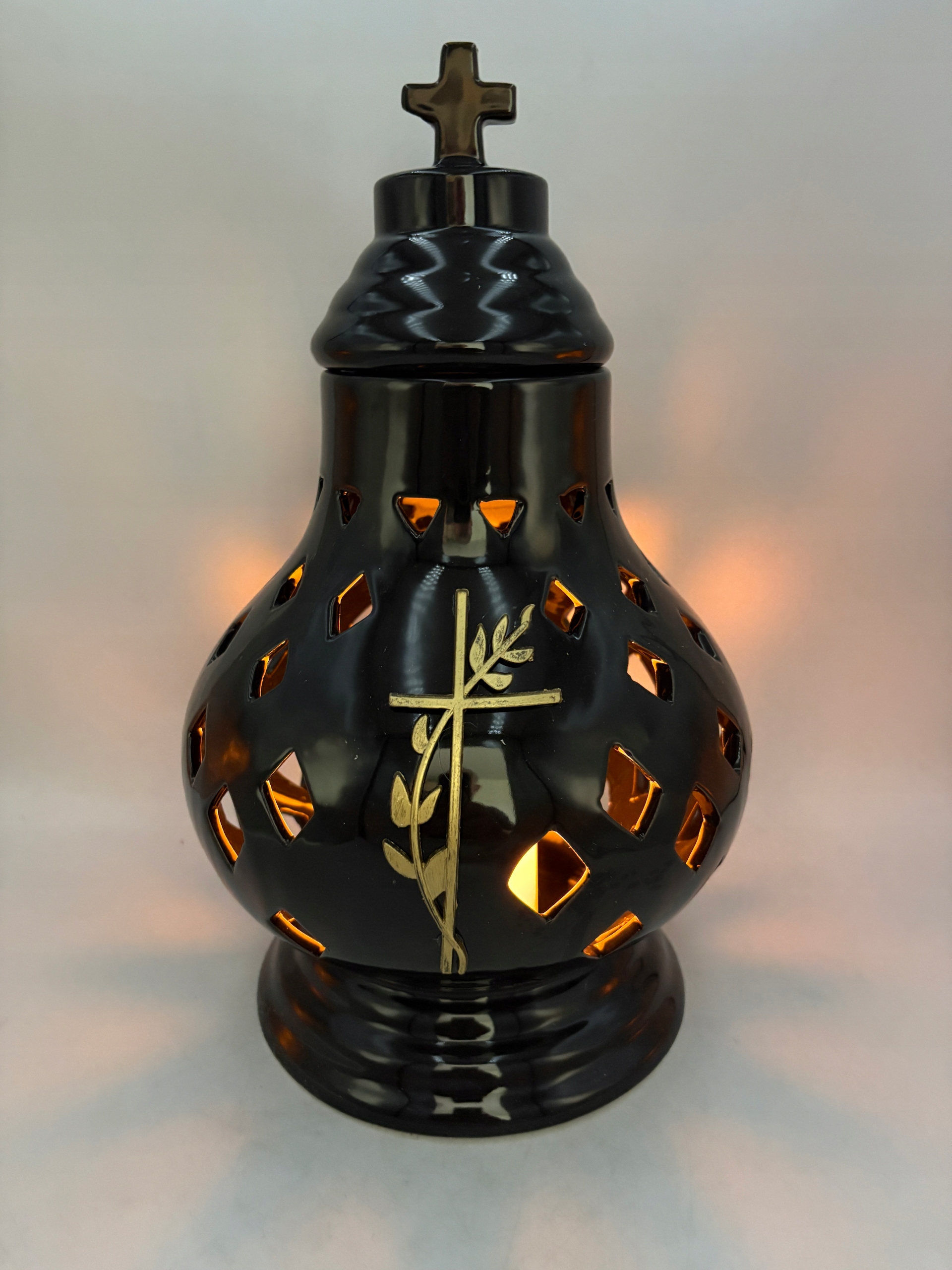 БОЛЬШАЯ ГИГАНТСКАЯ Свеча со вставкой ФОНАРЬ КЕРАМИЧЕСКИЙ ГРАФИН черный ПРЕМИУМ КРЕСТ