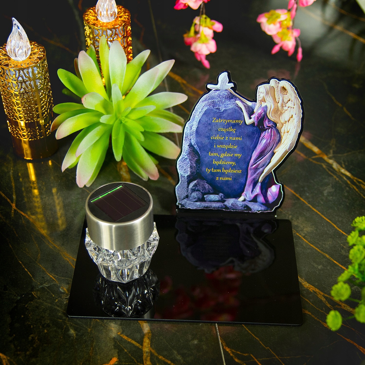 ВЕЛИКА СВІТЛОДІОДНА СОНЯЧНА СТАТУЕТКА ВІД СМІТТЯ ДЛЯ МОГИЛИ КЛАДОВИЩА