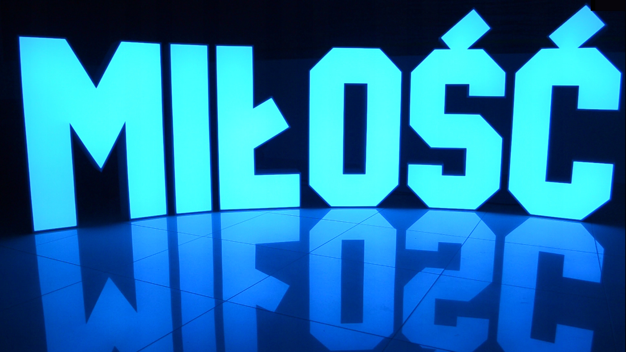 Качественный набор объемных букв, образующих надпись LOVE, подсвеченных разноцветными светодиодными модулями RGB.