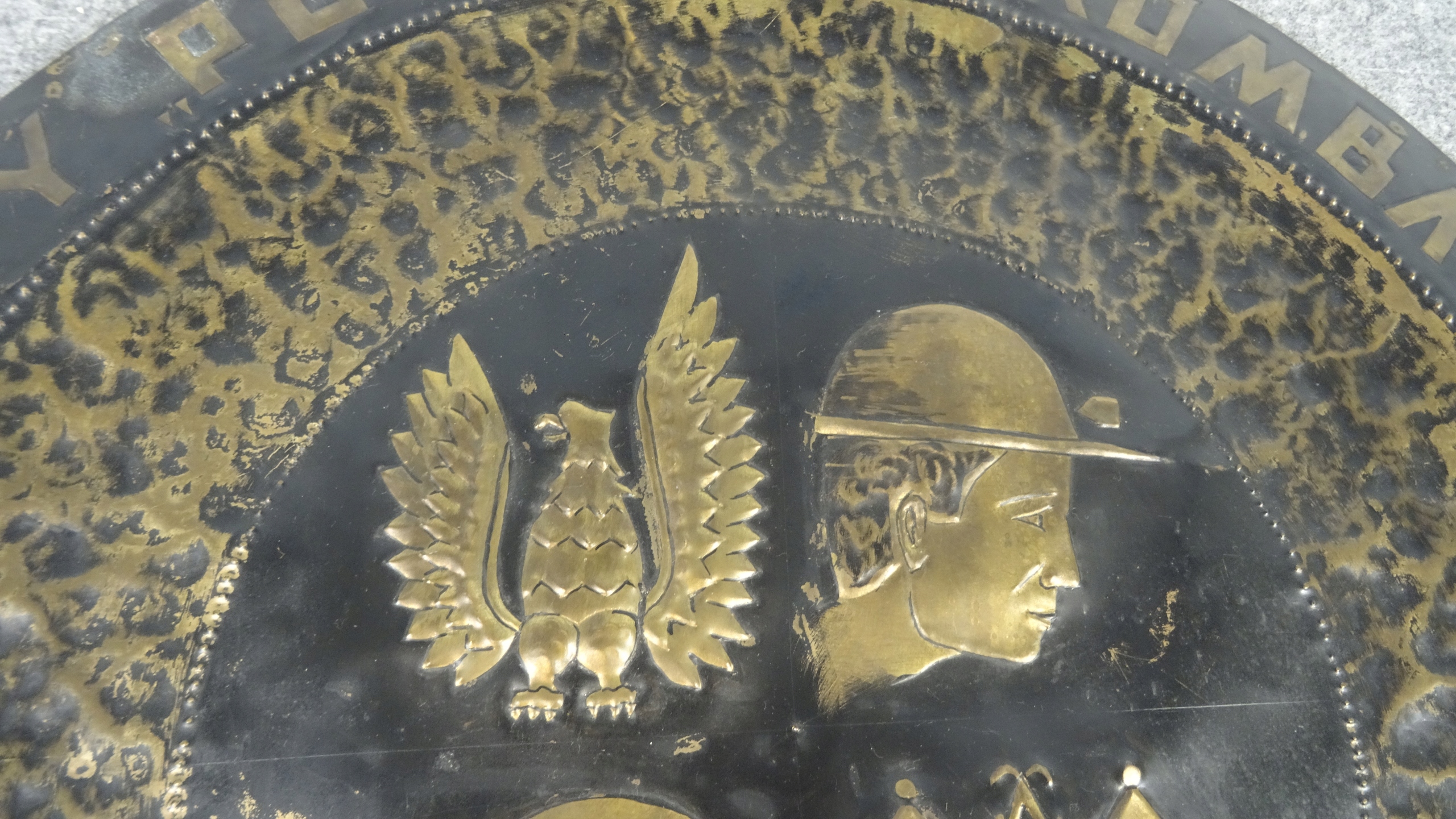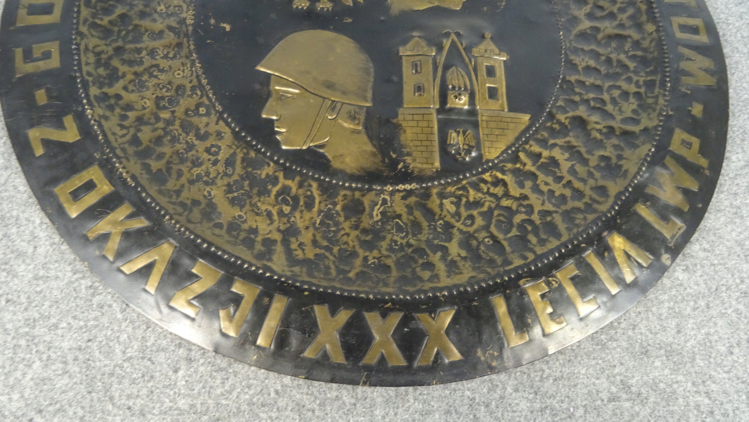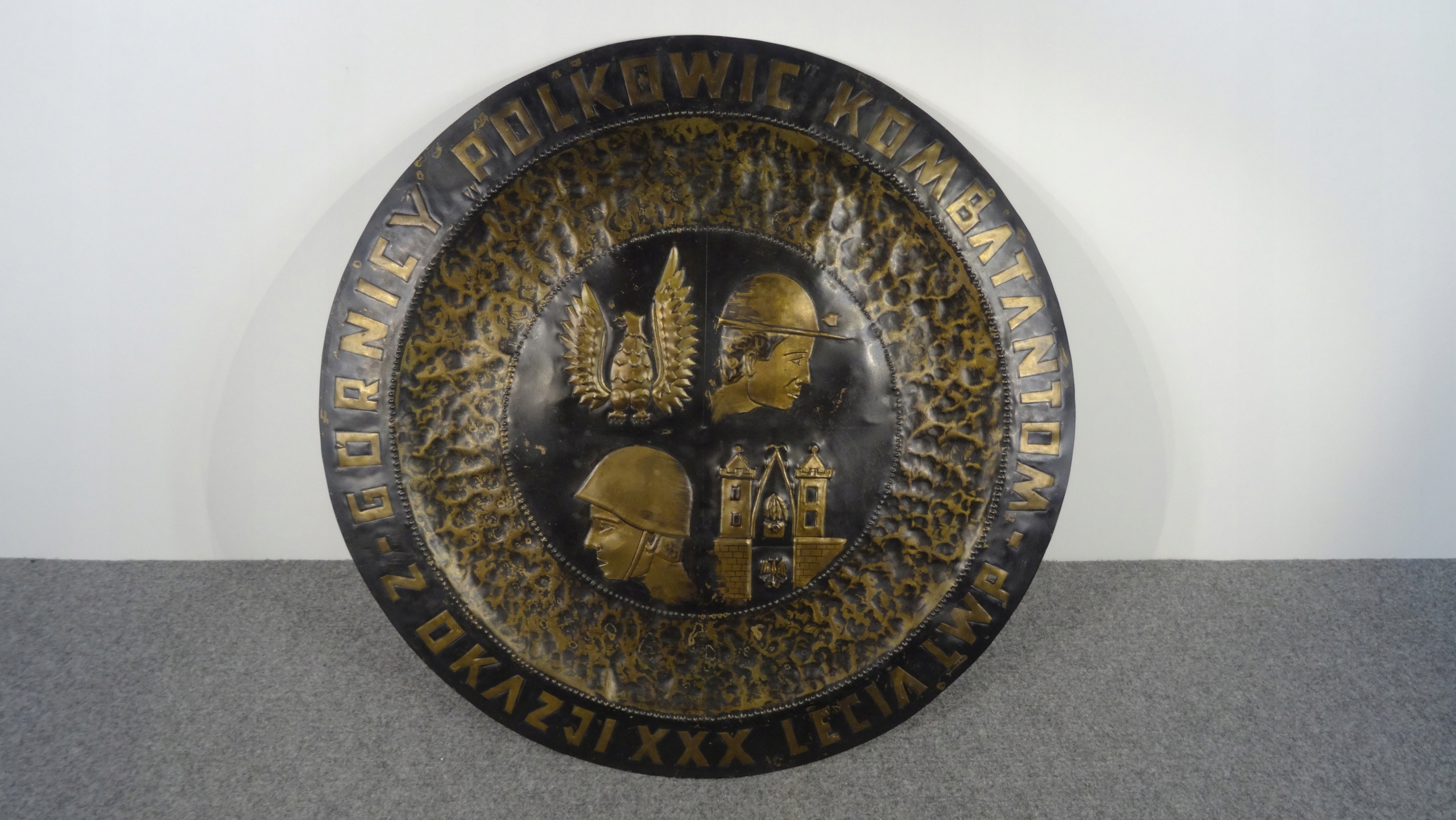 Большая памятная доска ручной работы из медного листа. По краю мемориальной доски надпись:ШАХТЕРЫ «ПОЛКОВИЧ» БОЕВЫМ В СЛУЧАЕ 30-ЛЕТИЯ ЛВП. Внутри находится репуссированное изображение; орел, голова шахтера в каске, голова солдата в каске, герб Польковице. Табличка с возможностью подвешивания.
