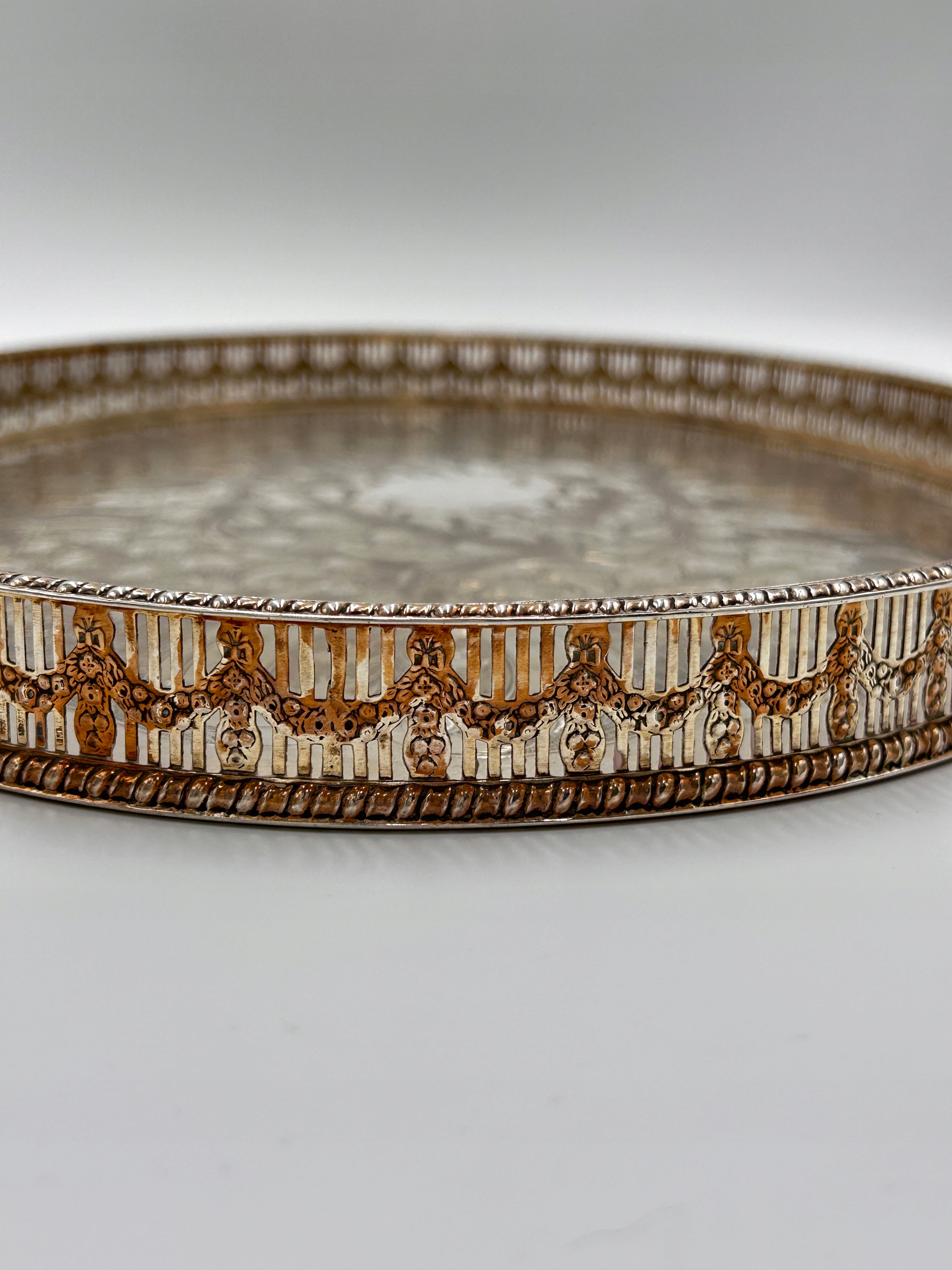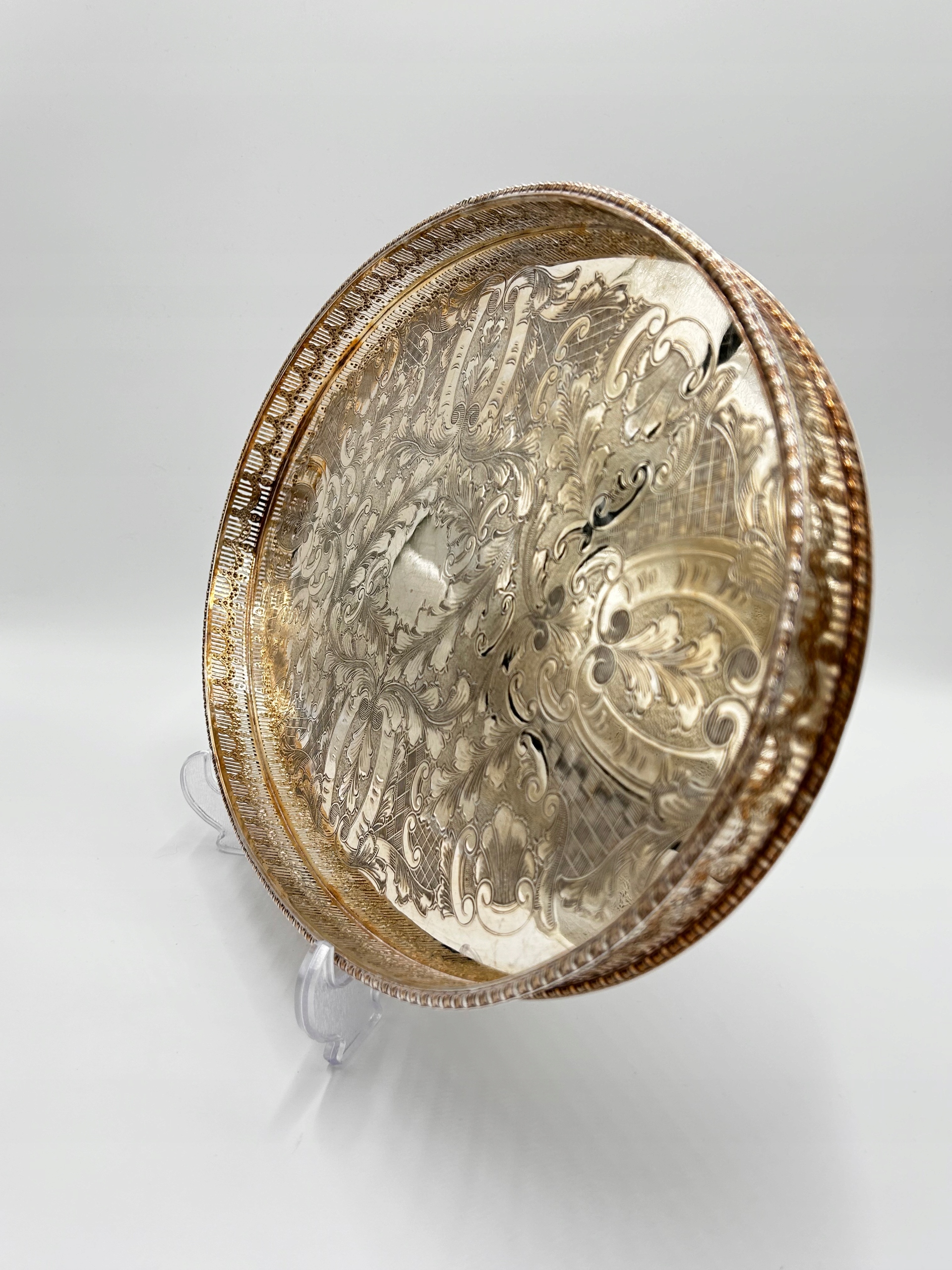 Предмет продажи - тарелочный поднос, подписанный, богато украшенный красивым растительным мотивом, отделанный ажурным краем. Уникальная коллекционная вещь.