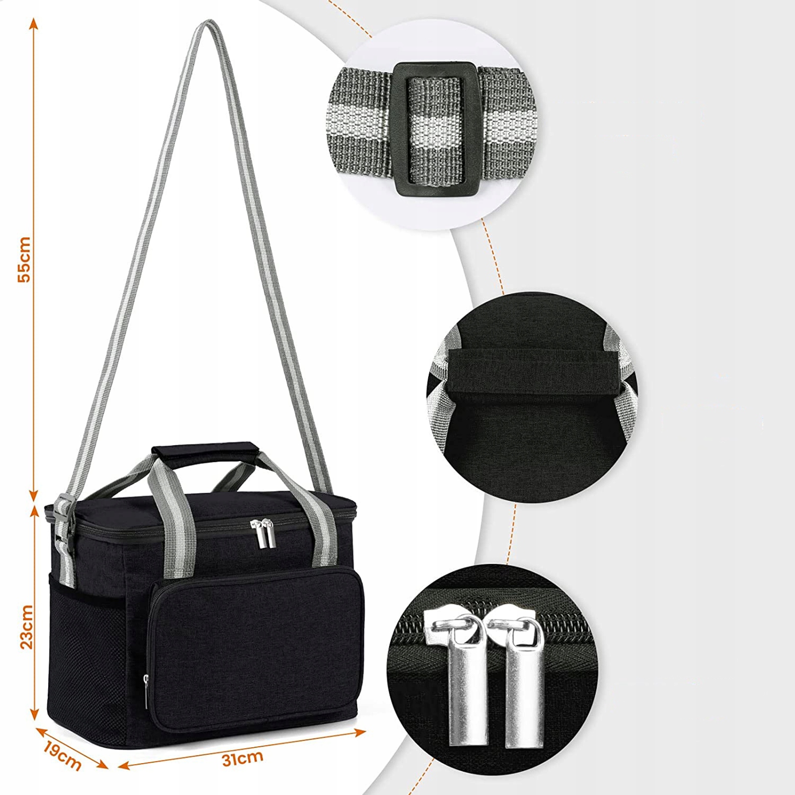 🧊 Максимальная вместимость термосумки для обеда — 15 л, чего достаточно для 24 банки колы (330 мл) или упаковка обеда, например сэндвичей, салатов, закусок, напитков и фруктов.