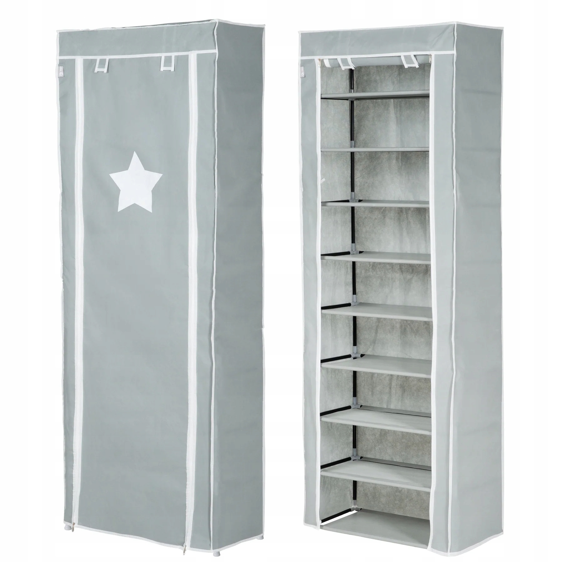 Текстильный шкаф Roba разработан в Германии. Характеризуется модульной системой с металлическими стержнями и пластиковыми соединителями. Цвет: серый с принтом белых звезд.