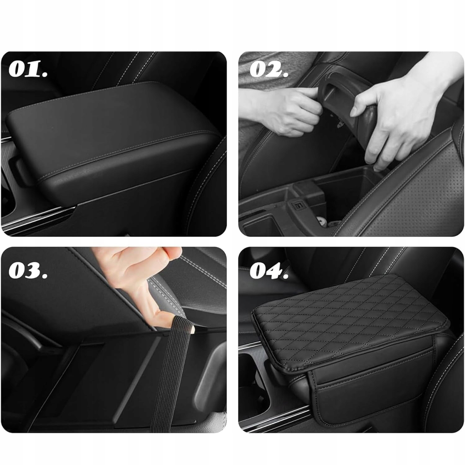 - Подлокотник средней консоли оснащен двойными гибкими полосами, которые могут быть прикреплены к центральной консоли автомобиля. Инструменты не требуются, и установка прокладки очень проста
