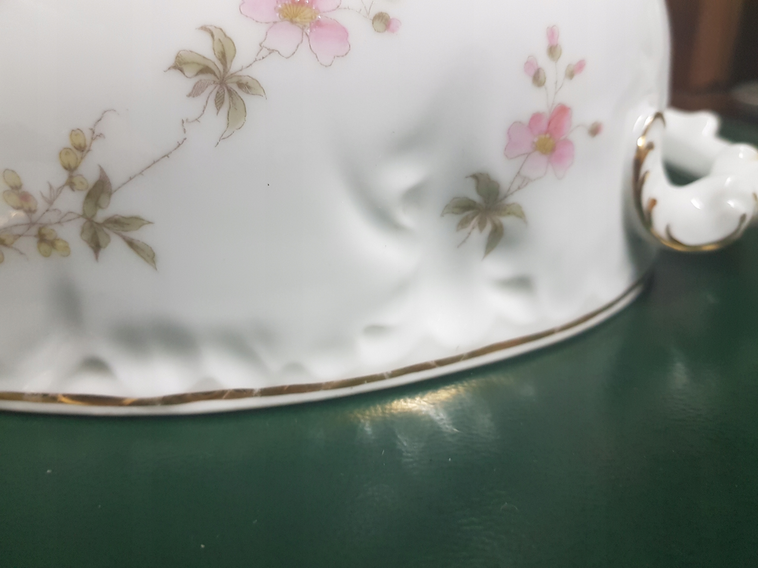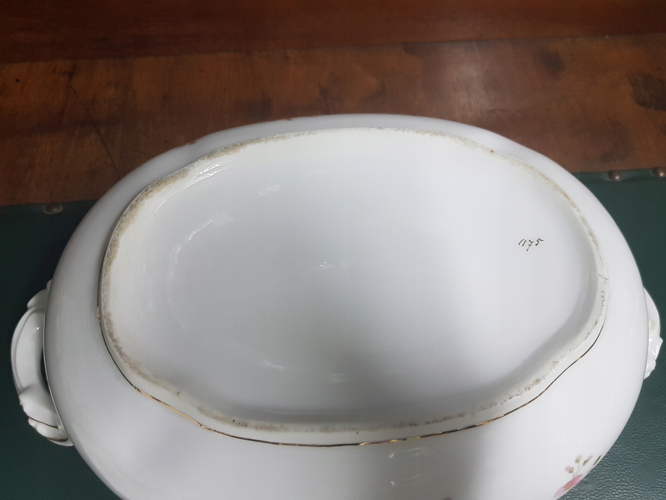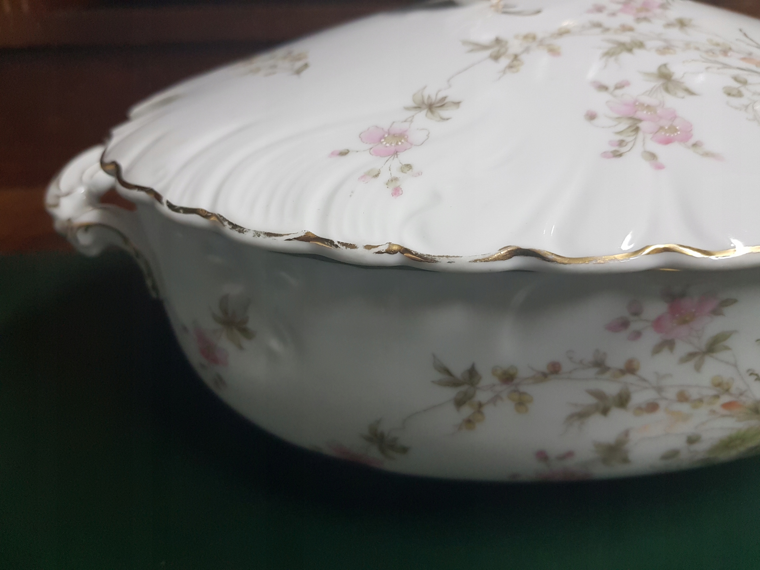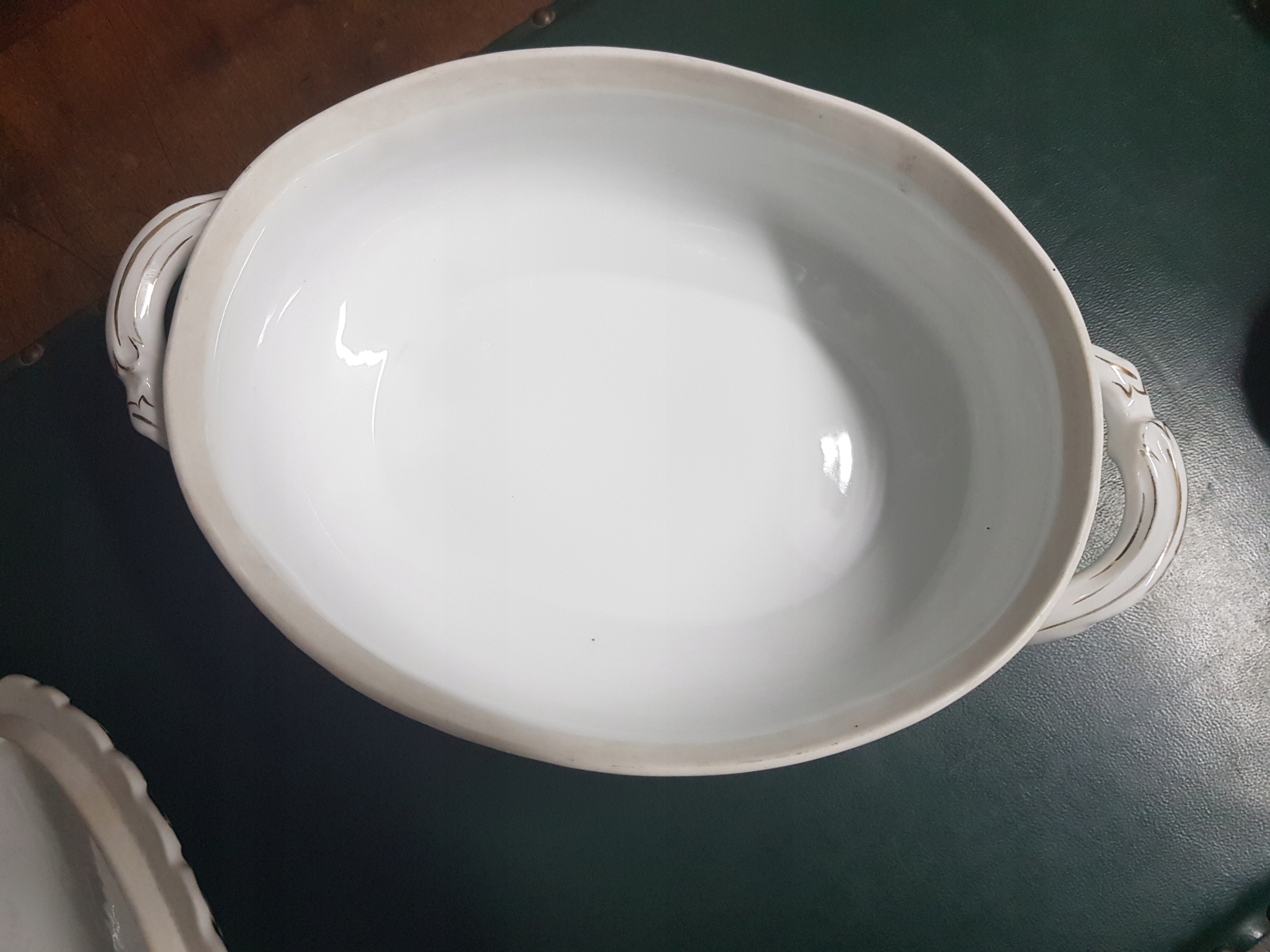 Предмет аукциона – ваза для супа в стиле модерн, украшенная растительным мотивом. Тиснение по позолоте по краю крышки.