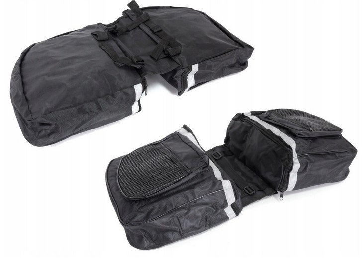 Сумка имеет 2 больших и два отделения поменьше. Он отделан светоотражающими элементами, что повышает безопасность во время движения.