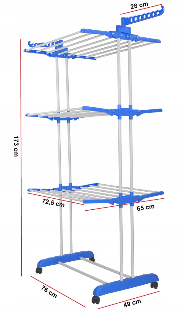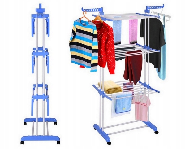 ВЕЛИКА ВЕРТИКАЛЬНА СУШИЛКА ДЛЯ БІЛИЗИ, СКЛАДНА, НА БАЛКОНІ, СИНЯ