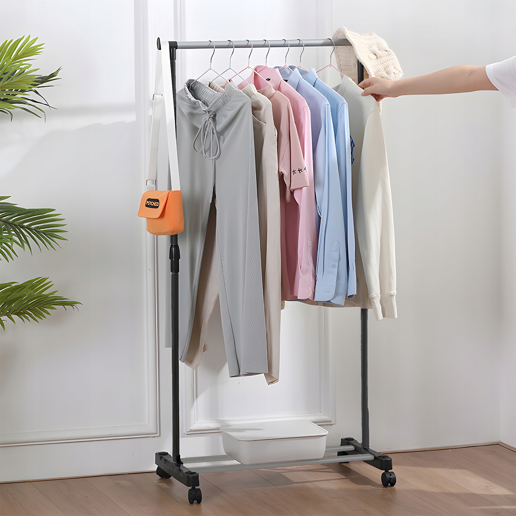 Стильная вешалка для гардероба — идеальный способ хранения одежды. Стойка имеет длинную штангу, на которую можно удобно повесить вешалки для одежды.