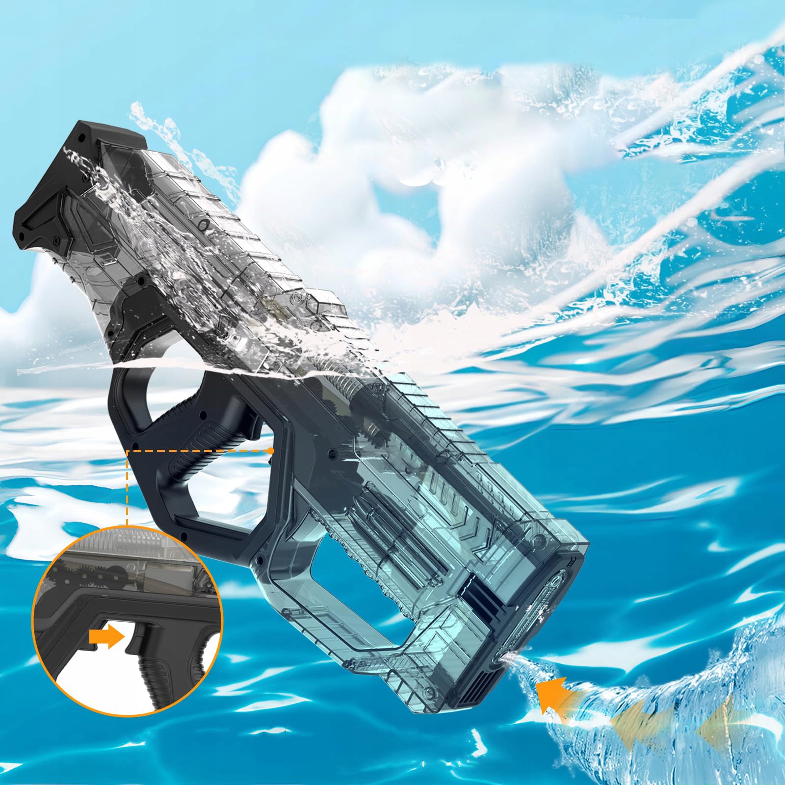 - Благодаря полностью прозрачному дизайну внутренняя структура видна, что позволяет видеть механические компоненты и печатные платы, что повышает прозрачность продукта. и достоверность. Эта пляжная игрушка изготовлена из материала ABS, подходит для детей 8-12 лет, устойчива к ударам и коррозии. Стильный и модный дизайн делает его центральным элементом детских водных игр и идеальным подарком для детей.