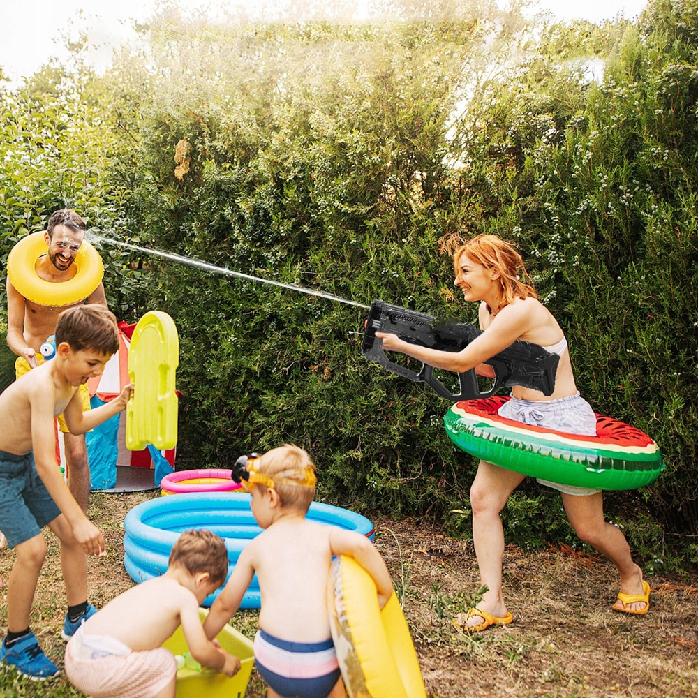 - Дальность стрельбы из этого водяного пистолета потрясающая: до 30 футов (приблизительно 10,1 метра), что позволяет сохранять высокую мощность стрельбы на дальней дистанции. Этот детский водопоглотитель подходит не только для семейного использования, но также подходит для вечеринок на открытом воздухе, кемпинга, пляжных вечеринок и т. д. Хотите ли вы продемонстрировать свои навыки друзьям или весело провести время на свежем воздухе, он удовлетворит ваши потребности.