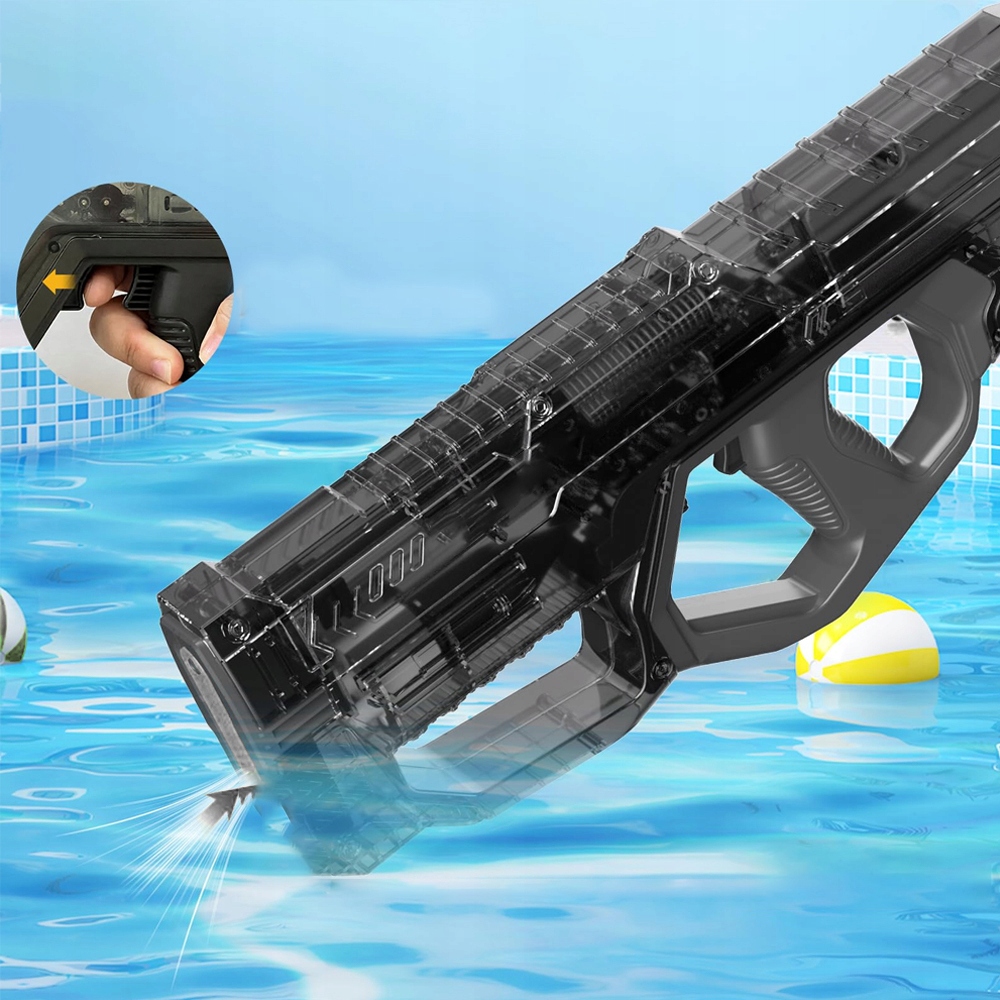 - В этом электрическом водяном пистолете используется уникальная конструкция автоматического всасывания воды. Просто окуните наконечник в источник воды и нажмите на спусковой крючок. Благодаря всасыванию вода быстро всасывается в пистолет, что избавляет вас от необходимости часто доливать воду и позволяет вам быть более сосредоточенным. Наслаждайтесь водным боем.