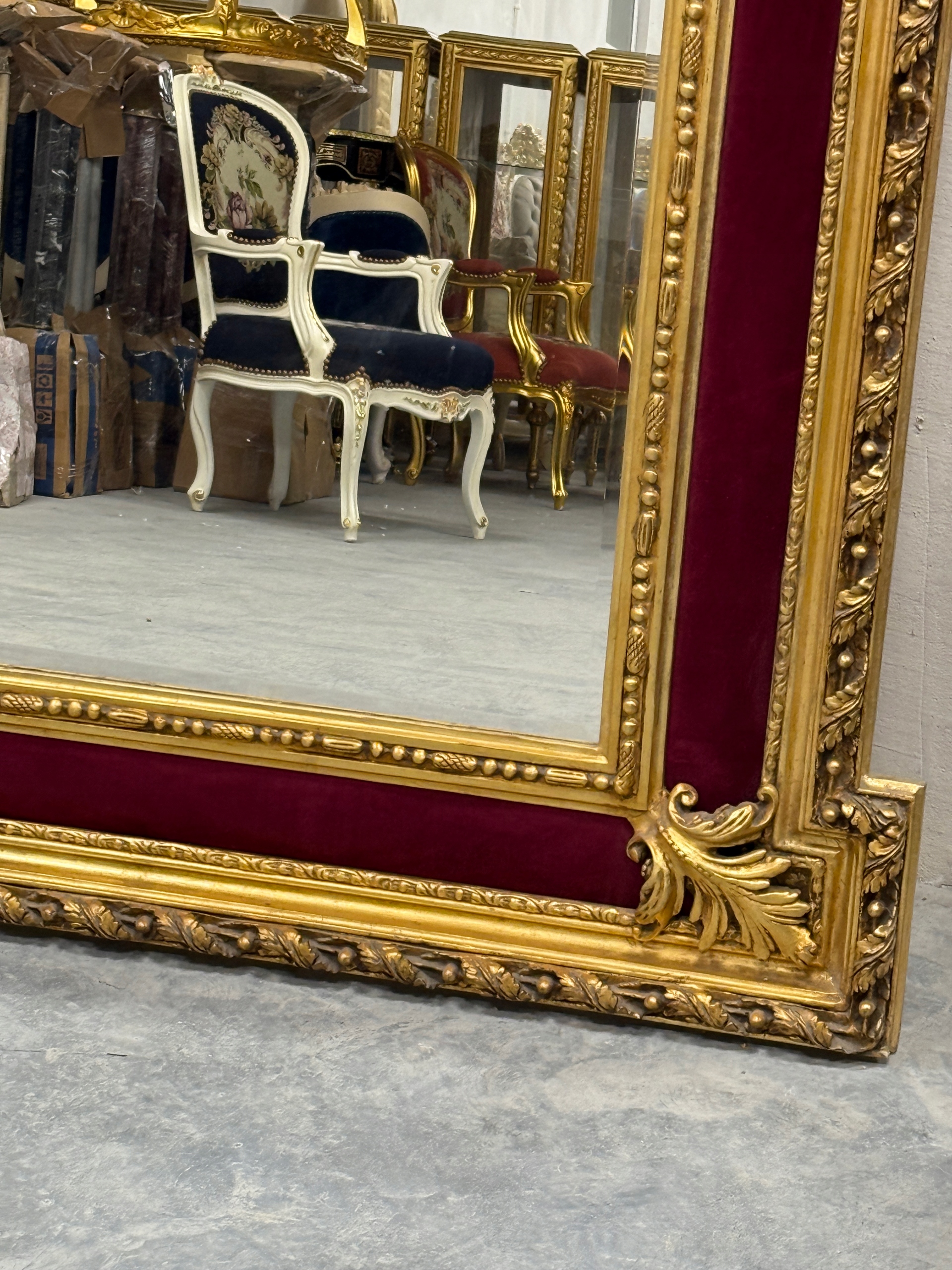 Большое бордово-золотое зеркало с ангелочками.