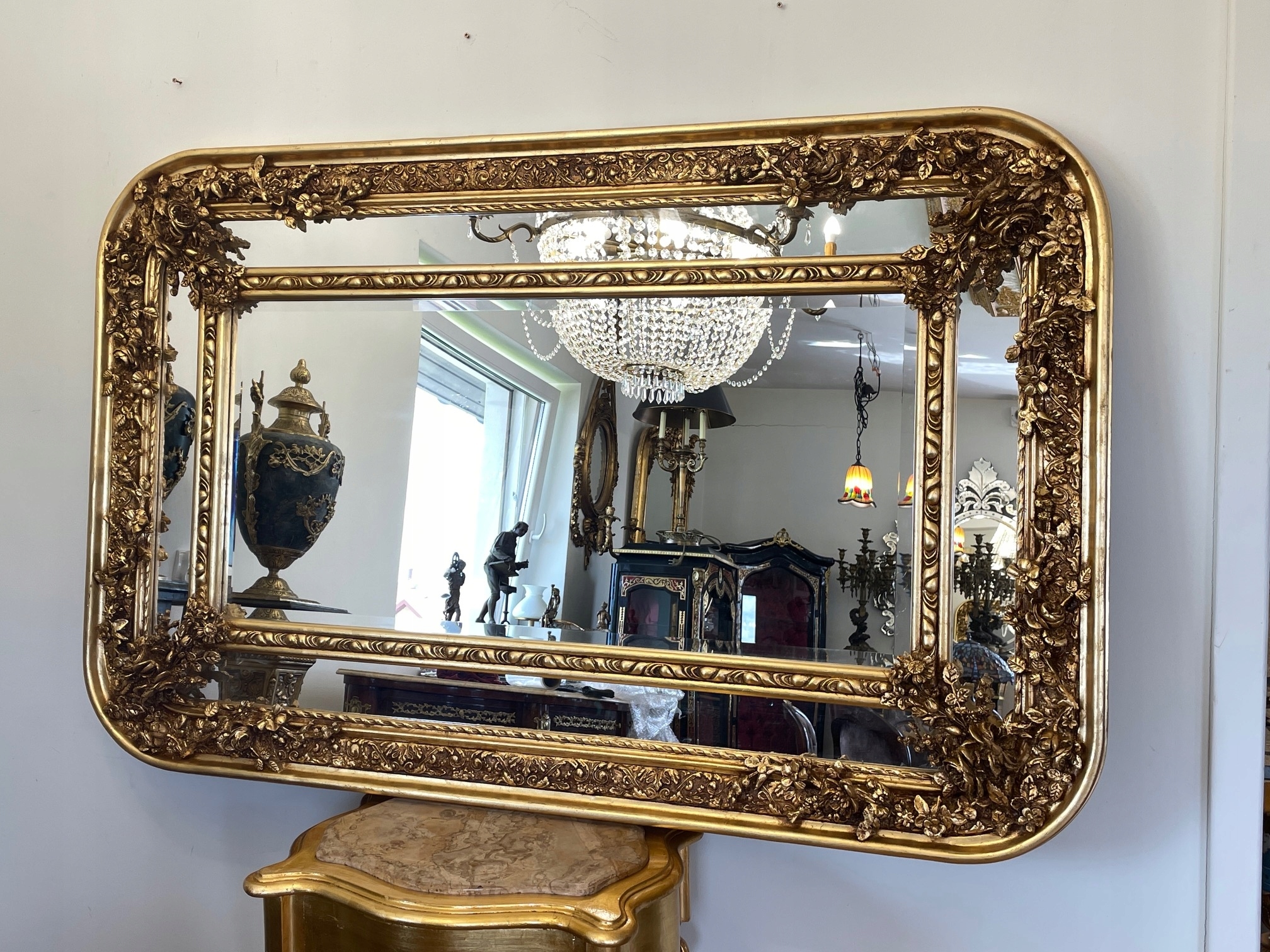 ВЕЛИКЕ ДЗЕРКАЛО - ЗОЛОТА РАМКА - декорована - 160 х 105