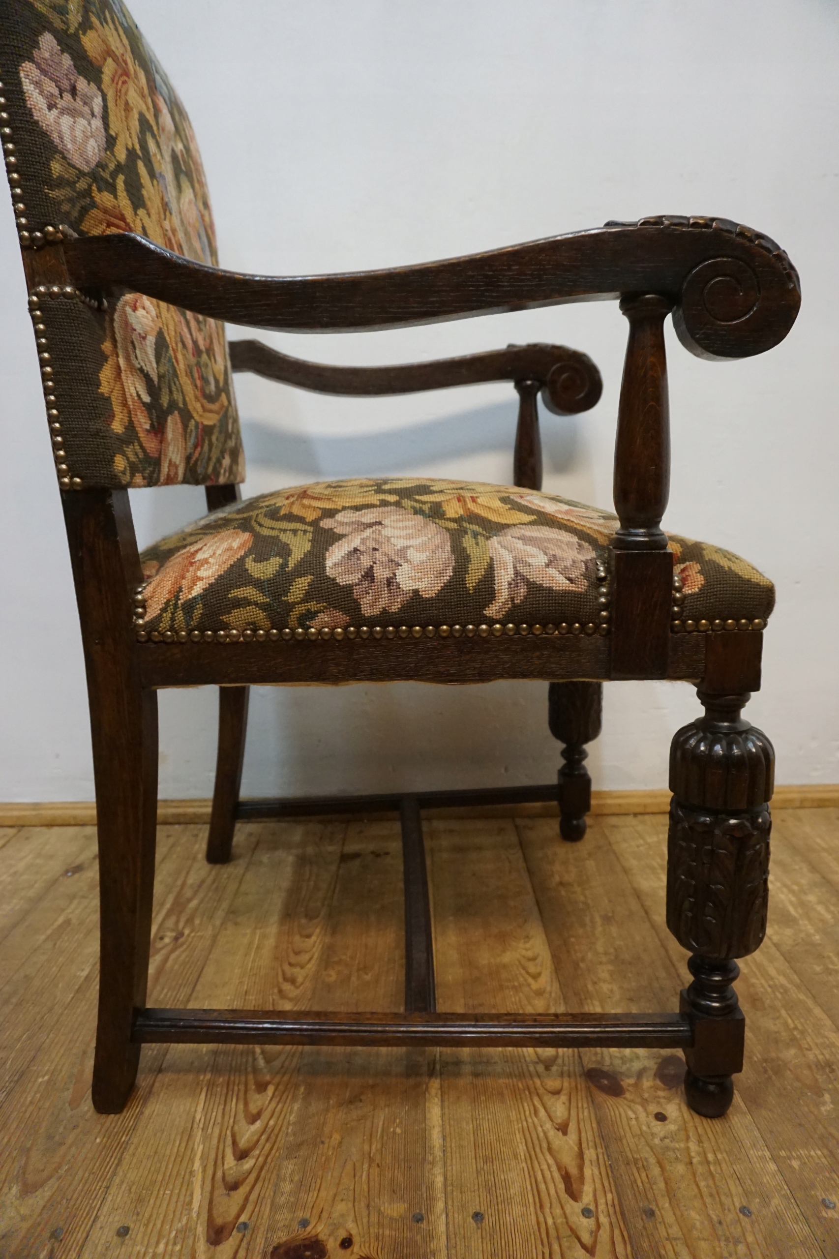 Мебель изготовлена из дуба, сиденье на пружинах.