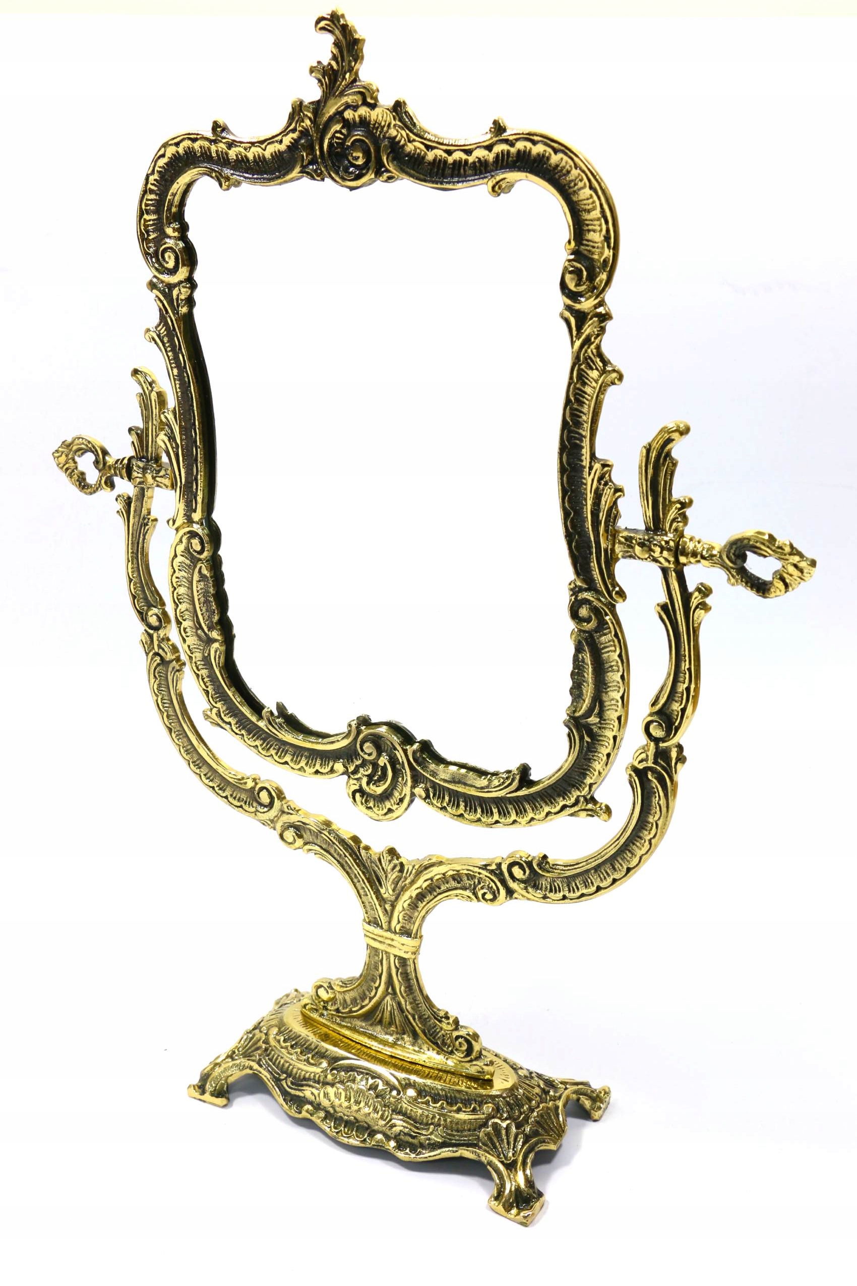 Богато украшенное латунное зеркало. Зеркало – отличная идея для подарка. Красиво смотрится на туалетном столике или комоде. Изготовлен польским производителем. Полностью латунное литье.