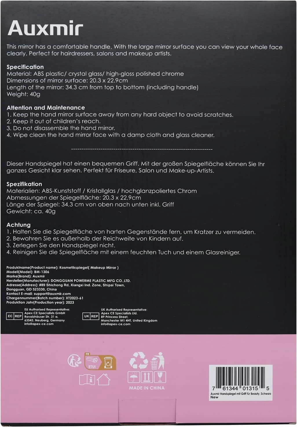 - Очень большая зеркальная поверхность: благодаря широкой зеркальной поверхности 23 x 20 см это ручное зеркало обеспечивает большее поле зрения, чем большинство зеркал.