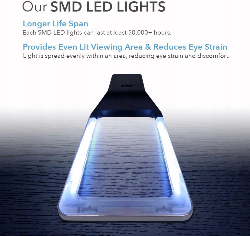 - Легкая и эргономичная ручка. Ручка этой светодиодной лупы весом всего 7 унций имеет эргономичный дизайн, подходящий для большинства рук, что делает ее идеальной для тех, кто хочет читать в течение длительного времени.