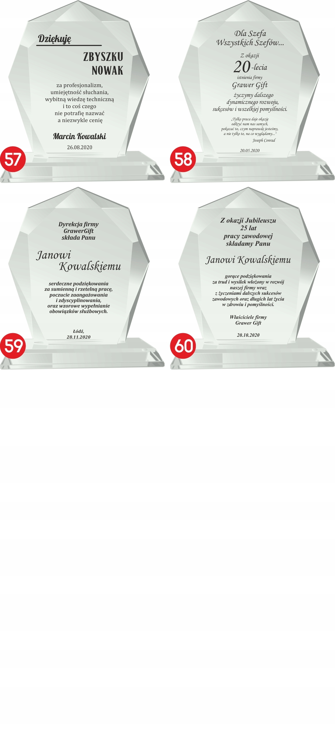 Мы являемся ведущим производителем подарков с гравировкой на рынке Лодзи. Наш приоритет – качество гравировки и скорость выполнения заказа. Это подтверждают наши комментарии, а также частые заказы авторитетных компаний, работающих по всей Польше, а также государственные заказы.
