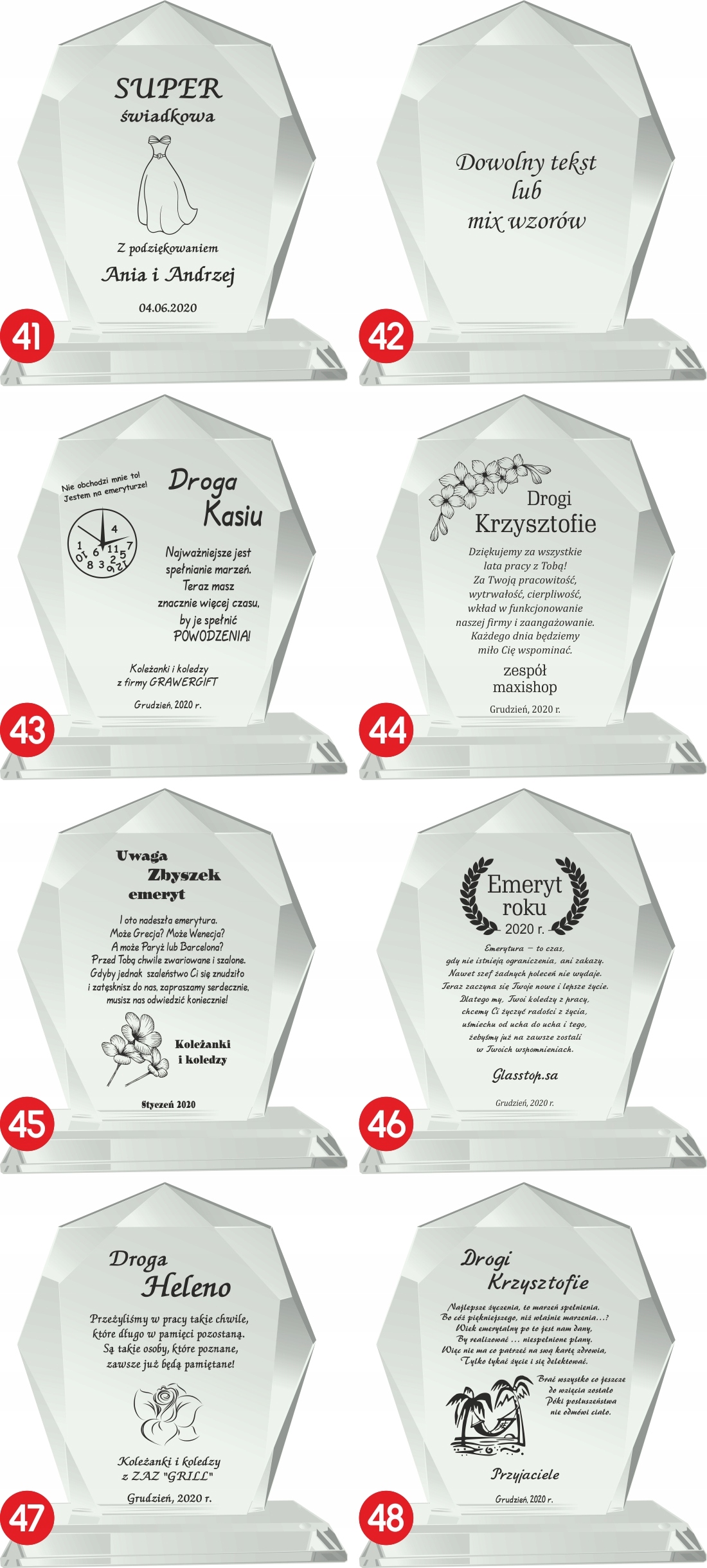 Тексты и варианты могут свободно изменяться по вашему усмотрению (тексты, отличные от представленных в наших вариантах, следует присылать в редактируемом виде, например, блокнот), а числа годовщин являются примерными значениями, которыеможно изменить.
