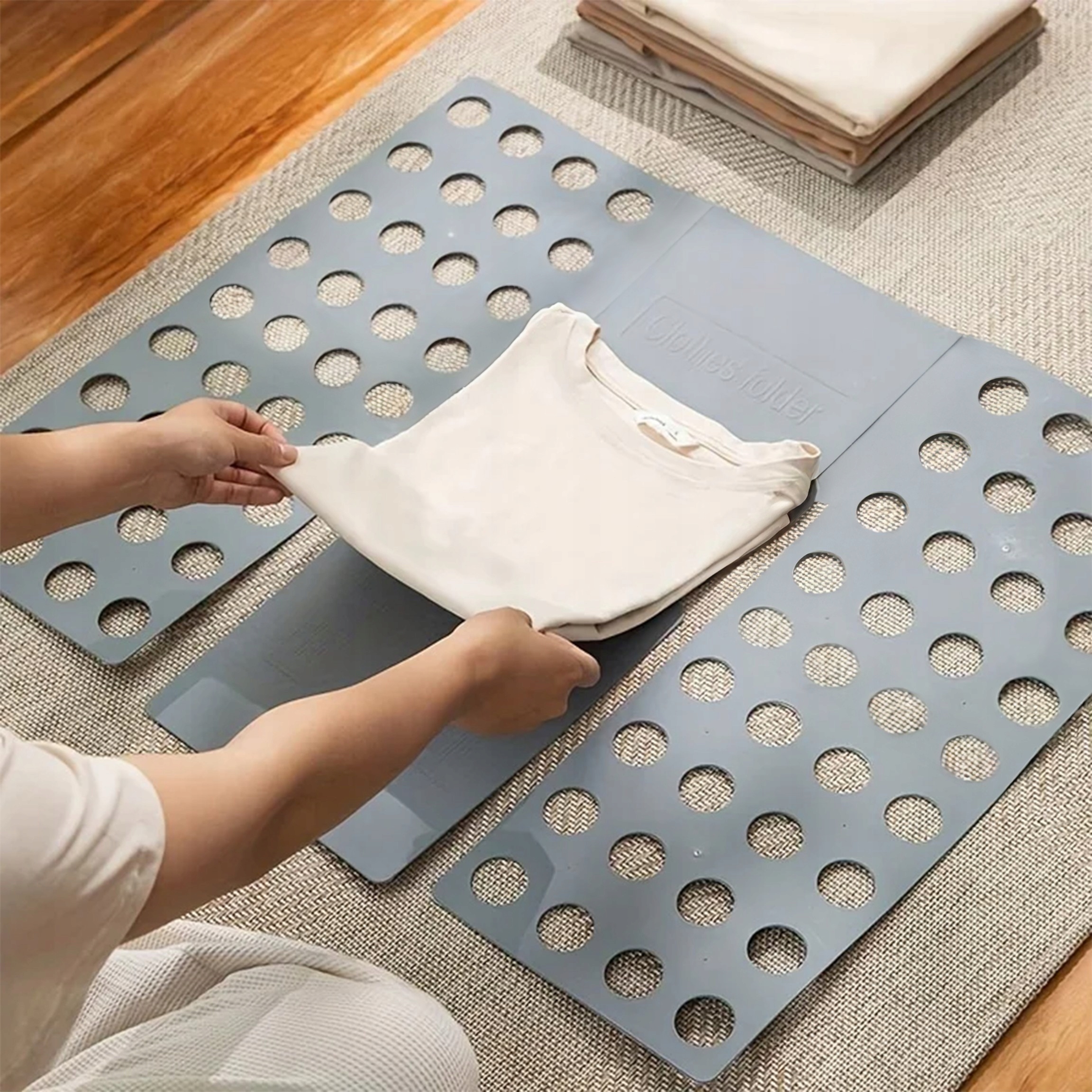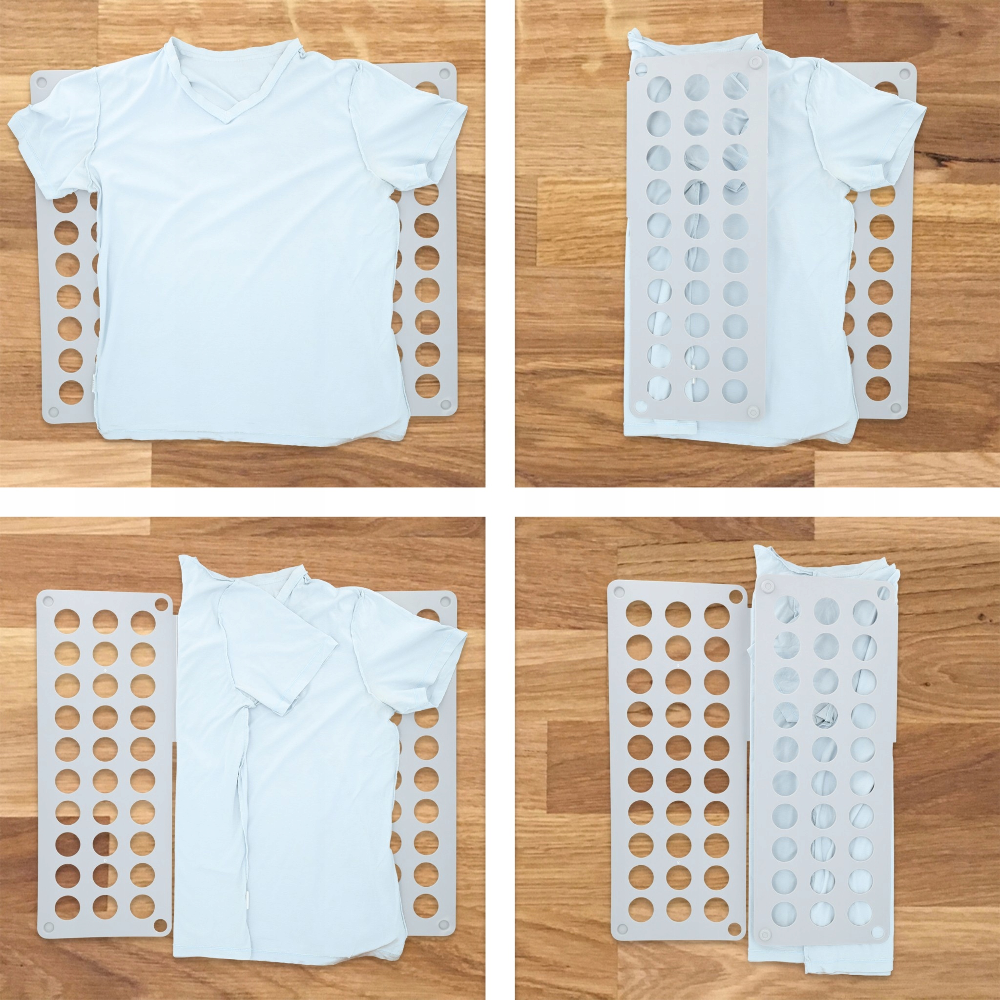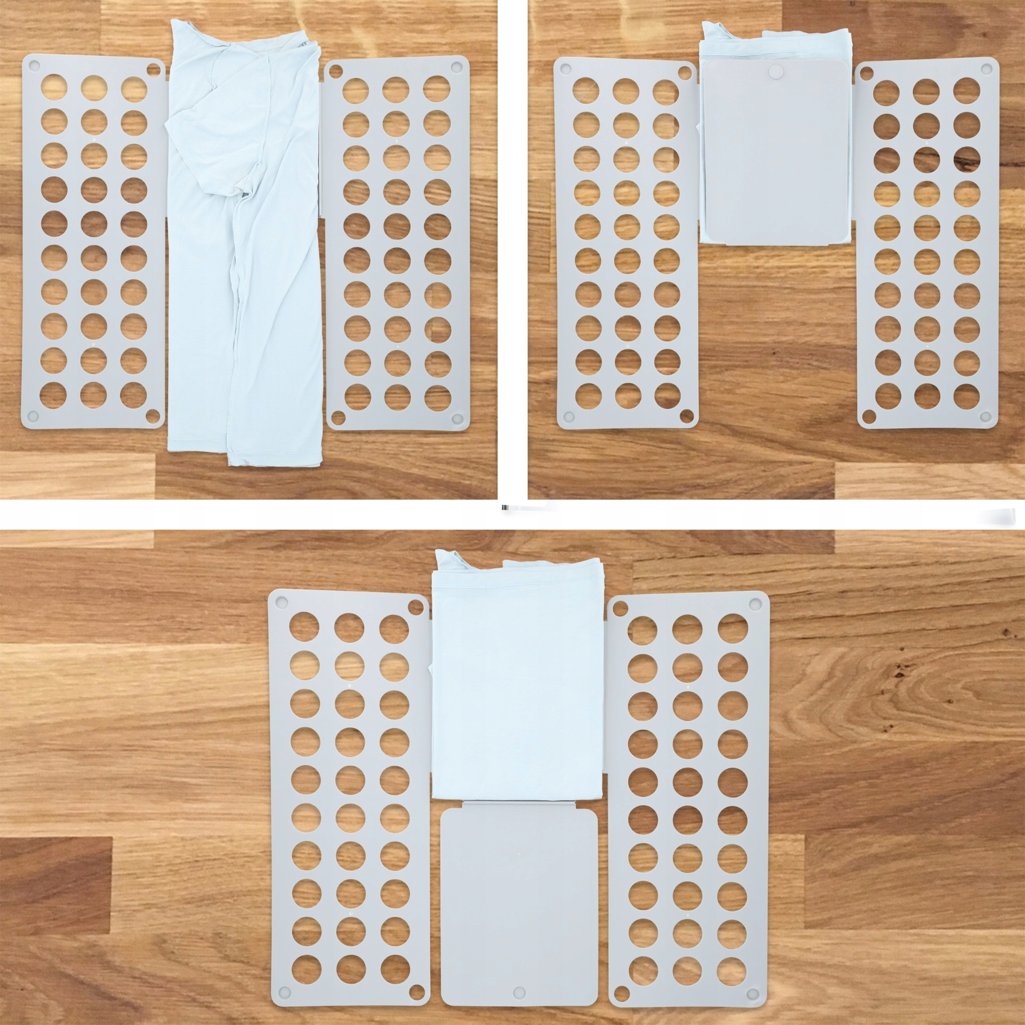 Благодаря этой доске вы складываете каждую T -Fish, толстовку, свитер и даже брюки за несколько секунд - всегда равномерно, аккуратный и в одинаковом размере. Облегчает организацию гардероба и позволяет вам сохранить заказ без особых усилий.