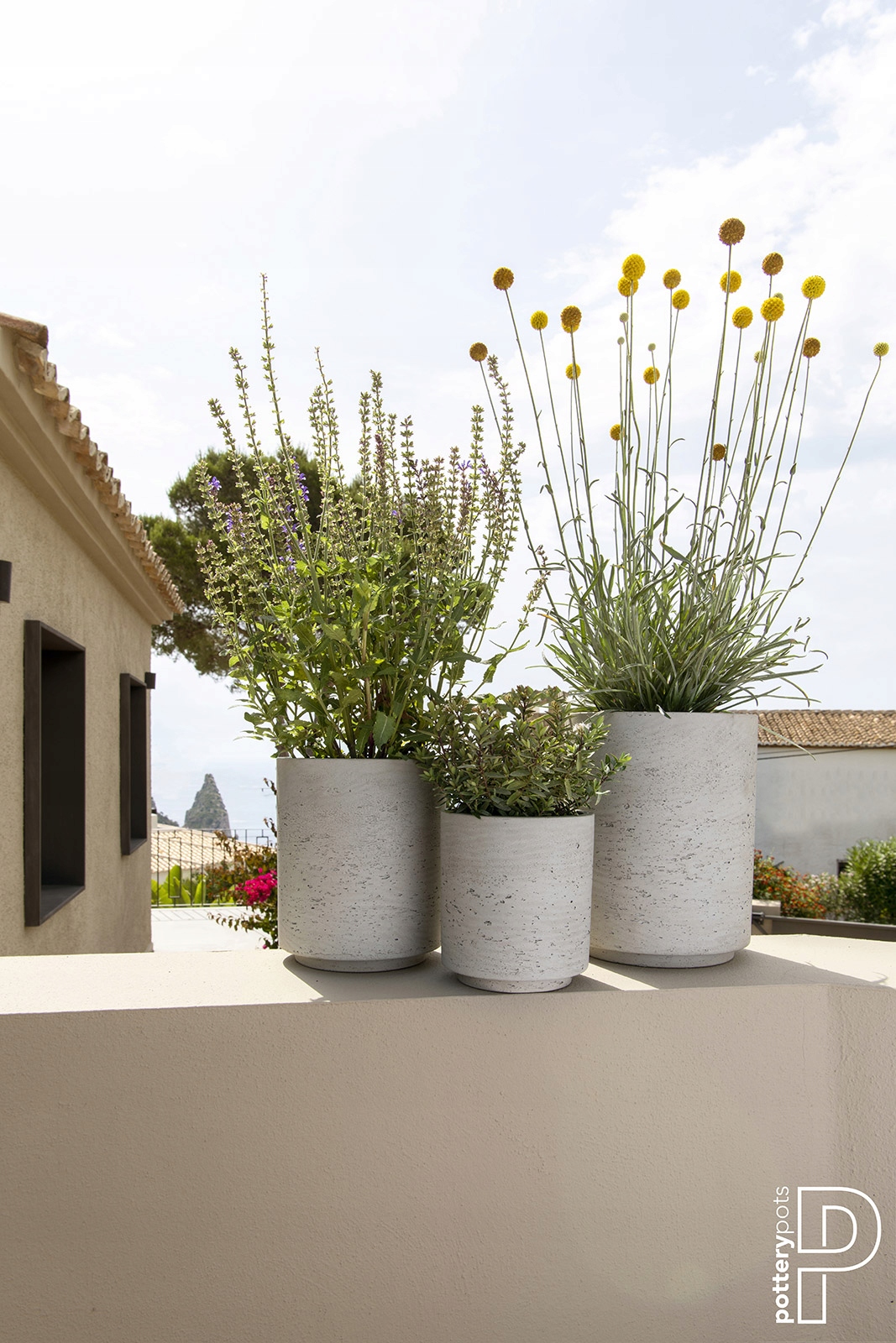 великі циліндричні бетонні горщики сірі SUZI 21/26