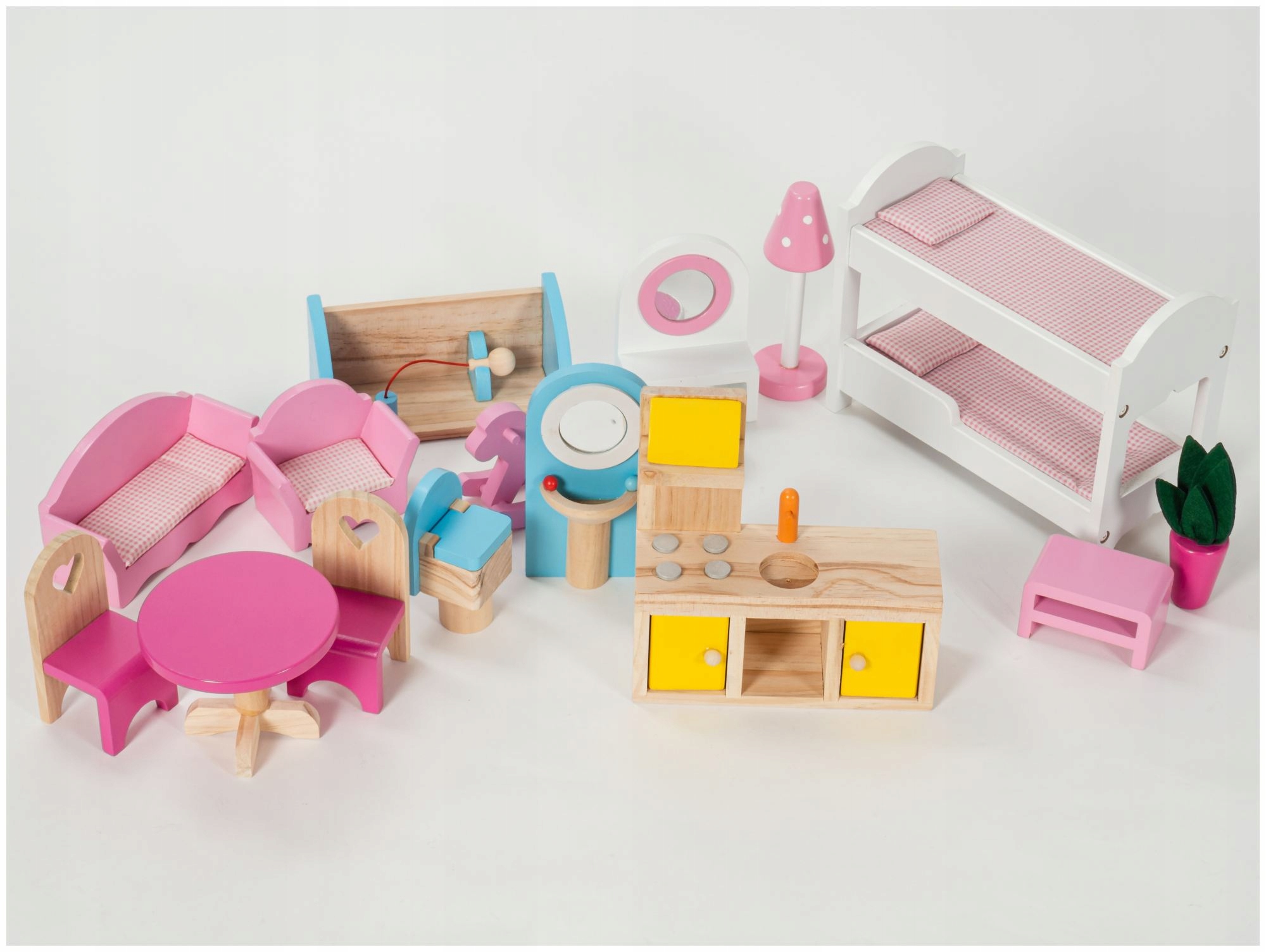 БОЛЬШАЯ ДЕРЕВЯННАЯ МЕБЕЛЬ ДЛЯ КУКОЛЬНОГО ДОМИКА + ТЕРРАСА + СВЕТОДИОД!!