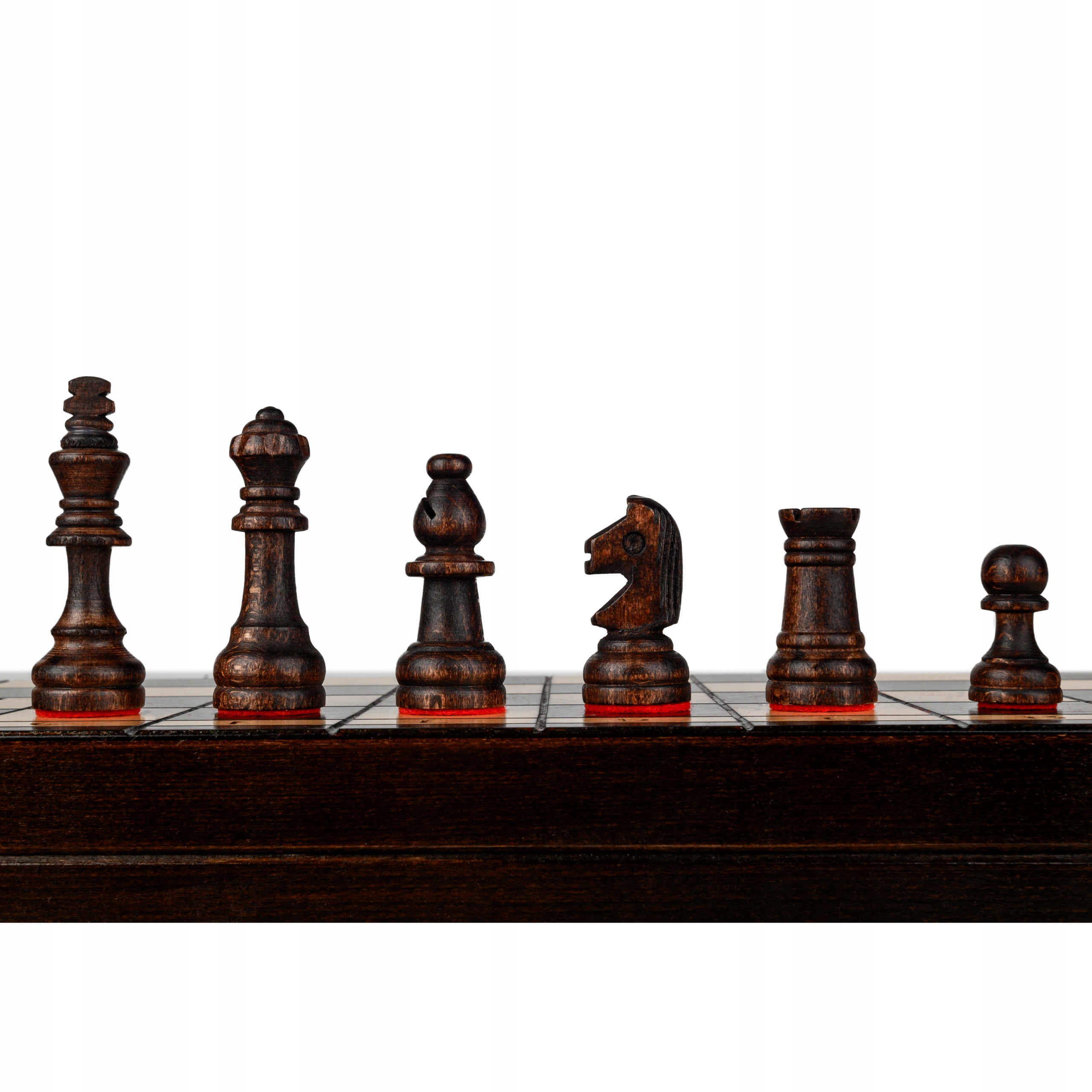 Большие деревянные шахматы в 38 -сантиметровой шахматах, сделанной красной вставкой