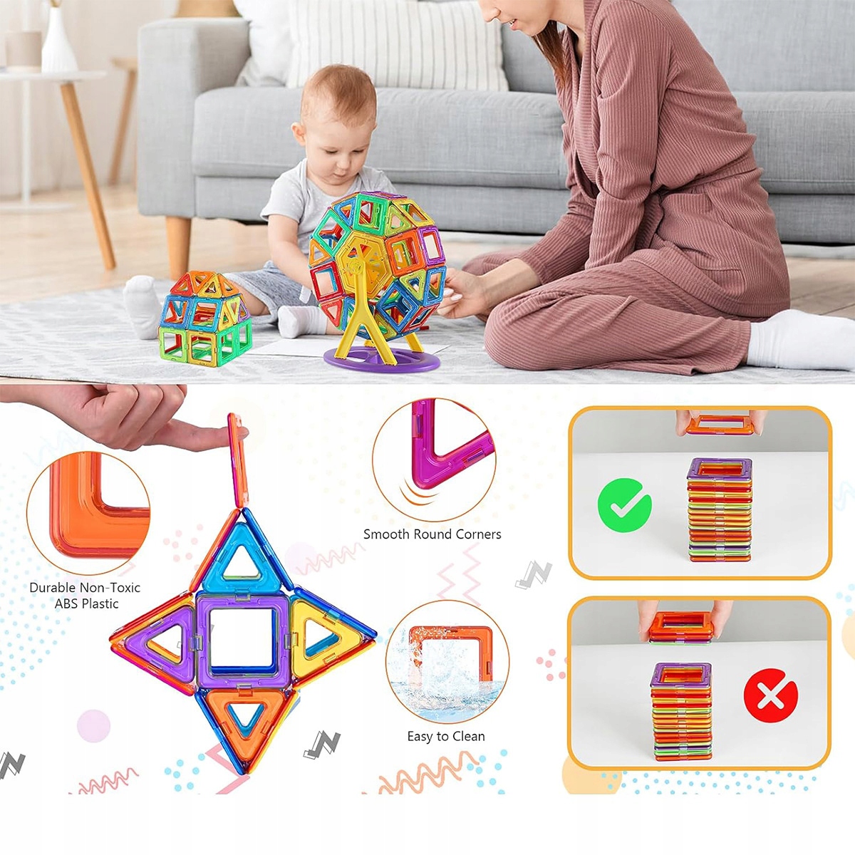 - 🌈【Полный игровой набор для развлечения / 120 деталей】 По сравнению со всеми другими предложениями наши магнитные строительные блоки имеют лучшую цену. -коэффициент производительности. 30 треугольников, 28 квадратов, 2 шестиугольника, 2 полукруга, 2 прямоугольника, 4 равнобедренных треугольника, 4 ромба, 2 трапеции, 26 карточек с буквами (немагнитные), 16 карточек с цифрами (немагнитные), 1 колесо обозрения, 2 колеса и 1 сумка для переноски.
