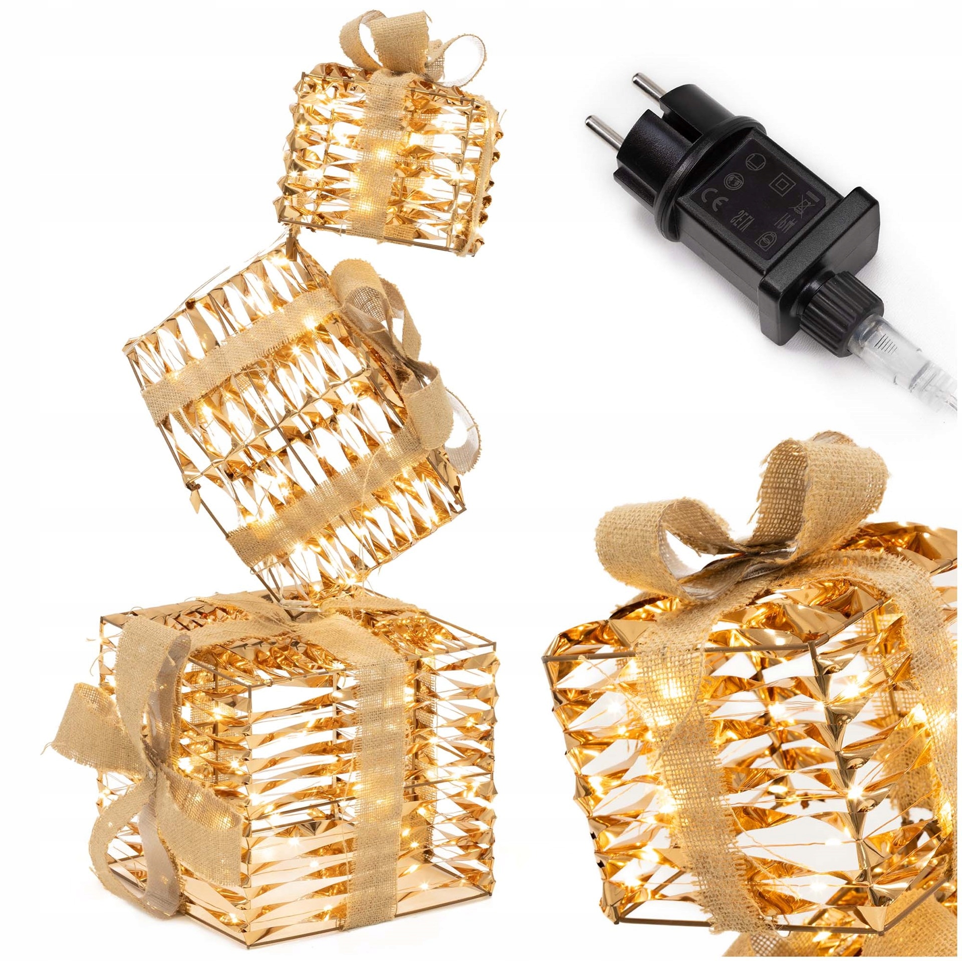 ВЕЛИКІ СЯЮЧІ СВІТЛОДІОДНІ ПОДАРУНКИ СВІТЛОВА ФІГУРА XXL ТЕПЛИЙ БІЛИЙ ПРИКРАСА 74см