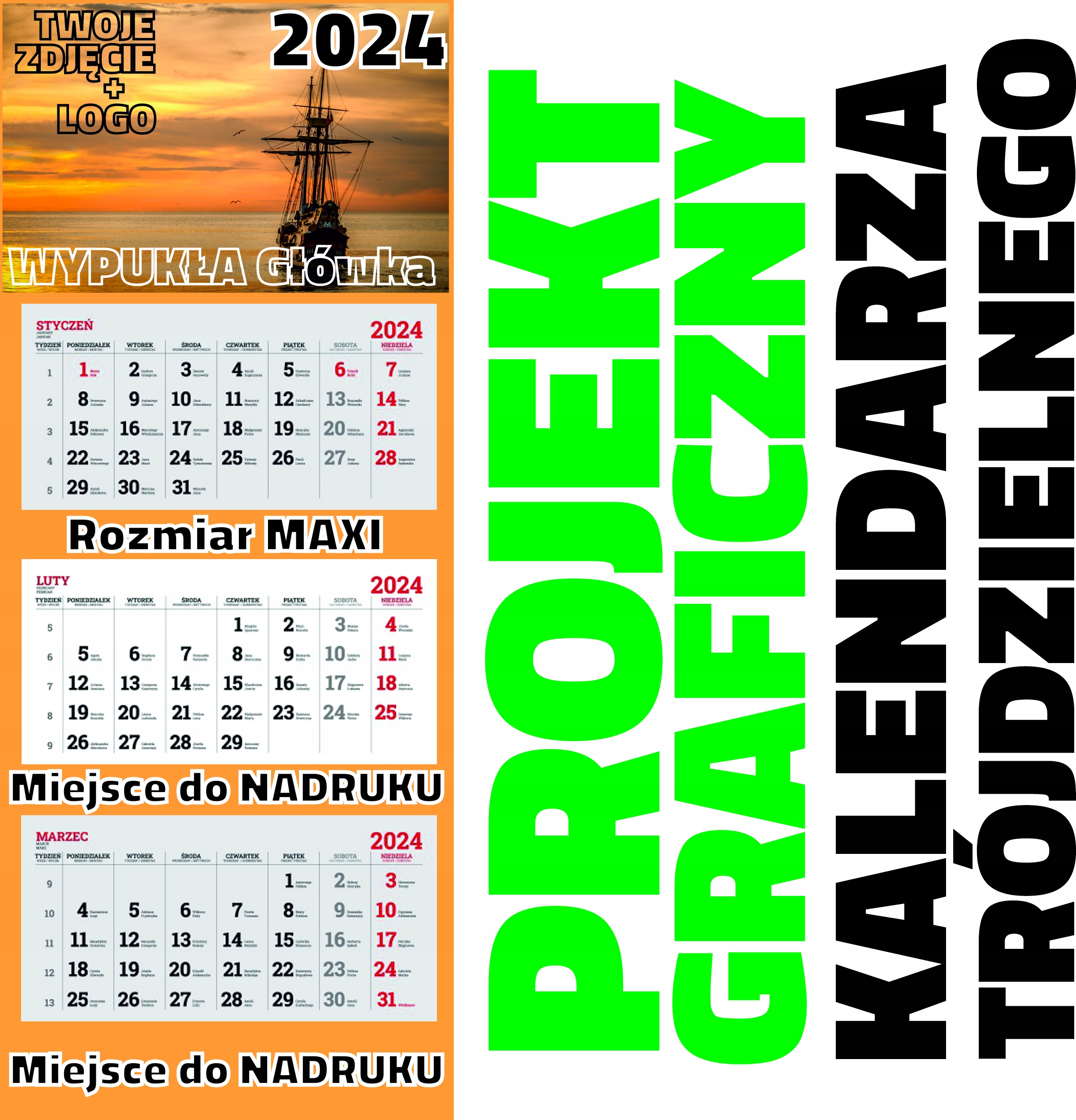 ВЕЛИКІ ТРІЙНІ 2024 Календарі з БУДЬ-ЯКИМ ПРИНТОМ ВАШОГО ЛОГОТИПУ 100шт.