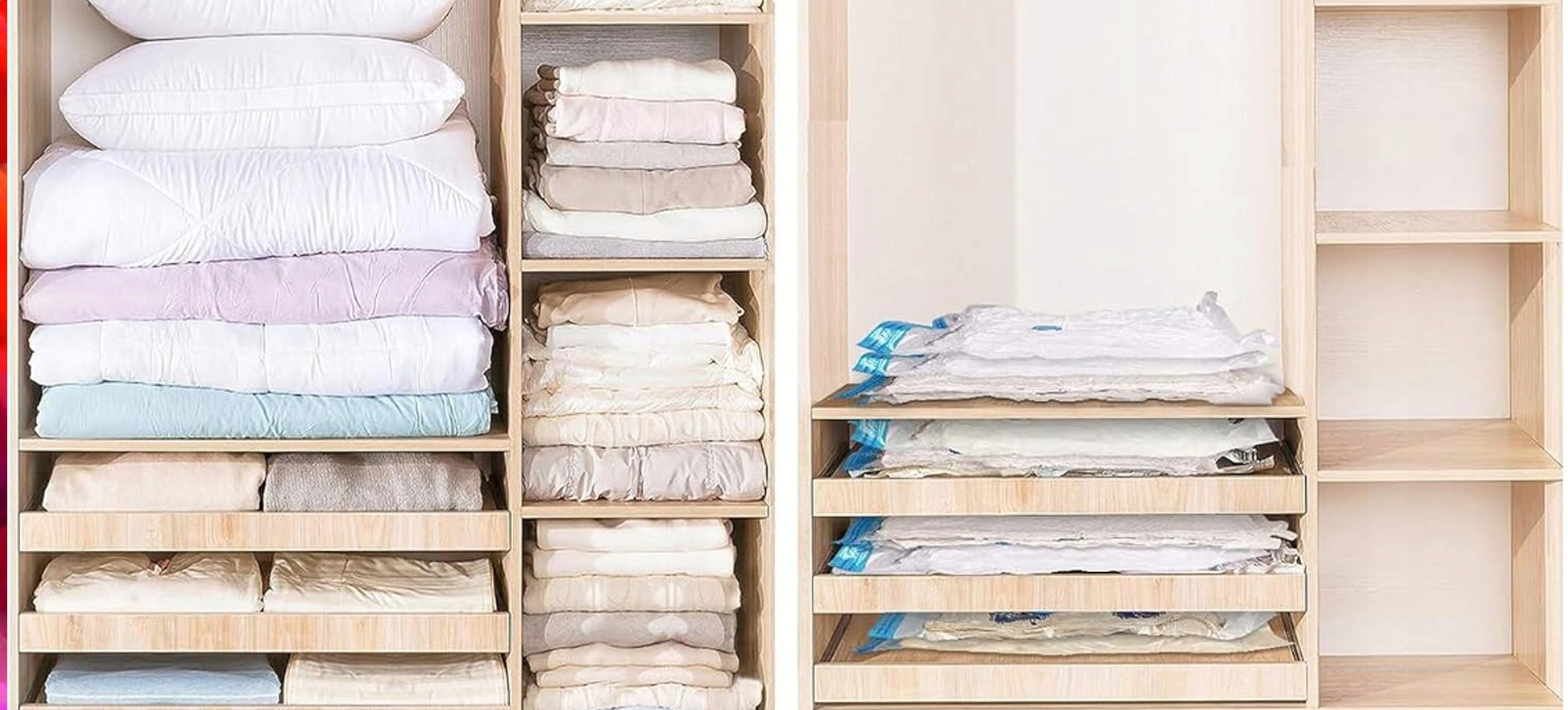 Ваш гардероб перегружен? Вам нужно дополнительное пространство дома? Наши вакуумные пакеты – идеальное решение! Уменьшите объем одежды и постельного белья до 80%!