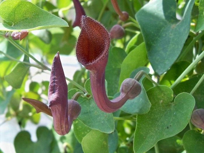 Виноградная лоза выросла высотой до 8-10 метров, цепляясь за поддержку листовыми хвостами. Он расцветает в мае и июне, но его цветы - хотя и интересны в форме (они напоминают изогнутые трубки или трубы) - они едва видны, часто скрыты под листьями.