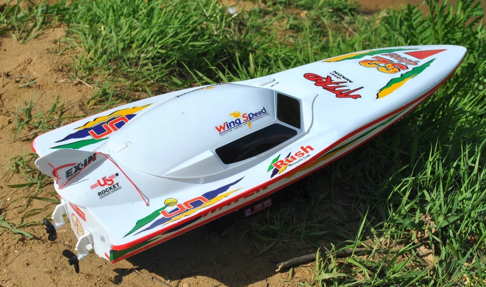Корпус скрывает всю электронику, в том числе два высокопроизводительных больших мотора 380°, которые придают лодке большое ускорение, и две мощные турбины, позволяющие модели разгоняться до максимальной скорости. скорость около 15 км/ч